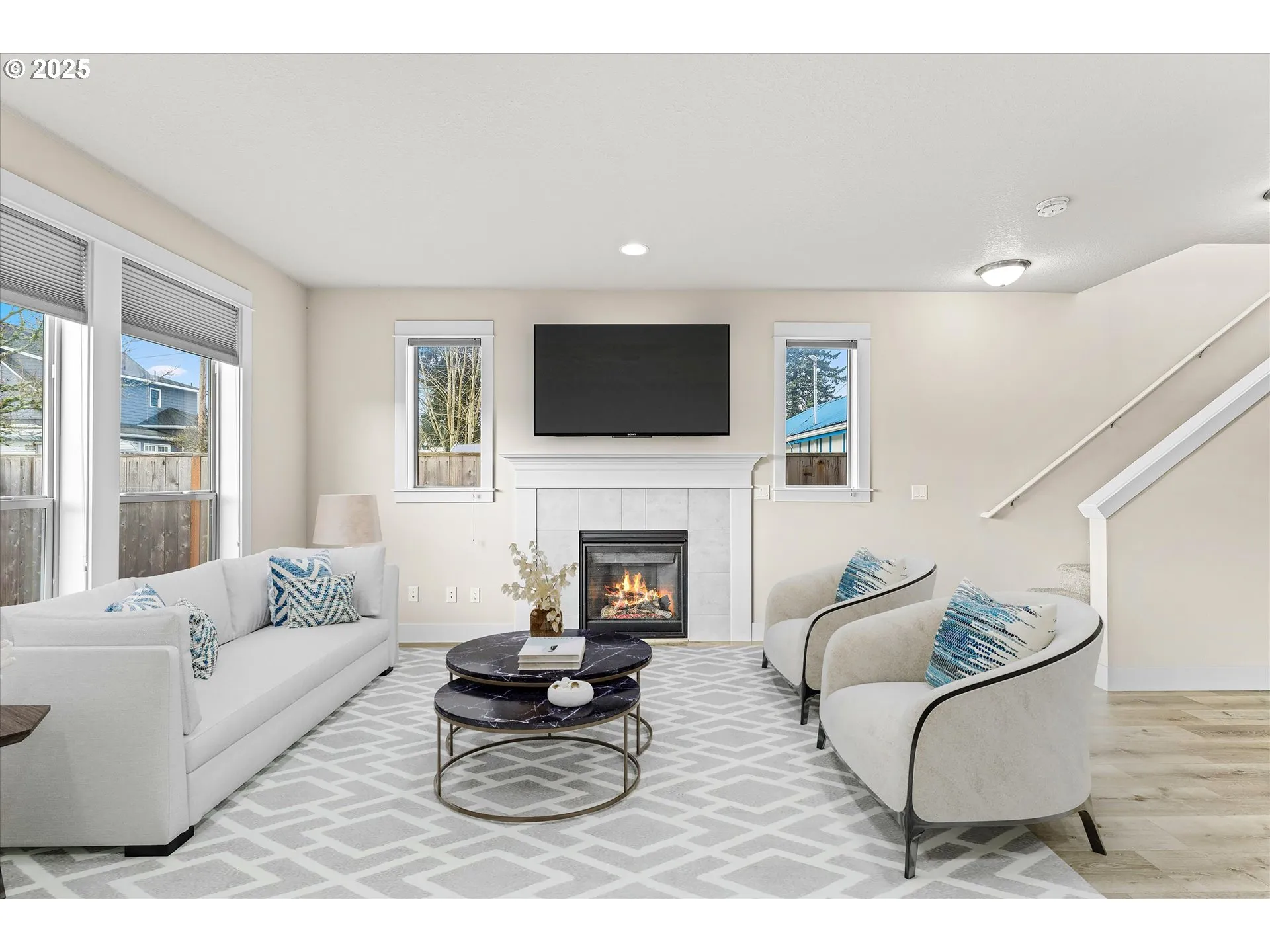 Seller paid $475k in 2021! What a deal on this home. Rentals allowed, no rental cap, Investor Opportunity** Built in 2021, this thoughtfully designed 3-bedroom, 2.1-bath Forest Grove home offers 1,661 sq ft of modern living in a quiet neighborhood backing to a natural preserve, no homes behind for exceptional privacy. The main level features durable laminate flooring, an inviting gas fireplace with blower, and an open-concept layout ideal for entertaining or everyday comfort. The kitchen is highlighted by a quartz island, stainless steel appliances, and neutral finishes throughout. Upstairs bedrooms include blackout blinds for restful nights. Enjoy year-round comfort with central A/C and the convenience of all appliances included. Energy-conscious features include a 2-car garage with 240V EV outlet and wiring for future solar. Fully fenced backyard, front yard sprinkler system, and peaceful surroundings. Located near Forest Grove parks, Pacific University, and local amenities, this move-in-ready home blends nature, efficiency, and modern style.
