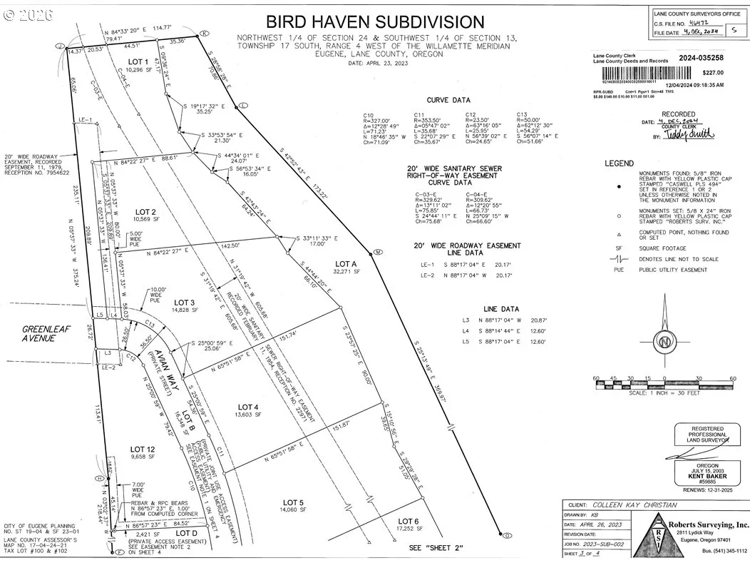 An exceptional development opportunity in the desirable North Eugene area, this upscale 11-lot vacant land package in the Bird Haven Subdivision spans 4.07 acres of already divided lots. Zoned R-1 and meeting middle housing guidelines, the property offers excellent flexibility for residential development, with an average lot size of over 15,000 square feet. Ideally located with close proximity to schools and grocery stores, the Willamette River is nearly a hop, skip, and a jump away, offering stunning river views. Residents will enjoy easy access to nearby bike paths and parks—perfect for nature lovers and strolls with pets. Utilities are not currently on site; a $150,000 deposit bond, to be paid by the buyer after closing, is in place to bring utilities to the property. A rare opportunity for builders and investors seeking scale, natural beauty, and long-term value in North Eugene.