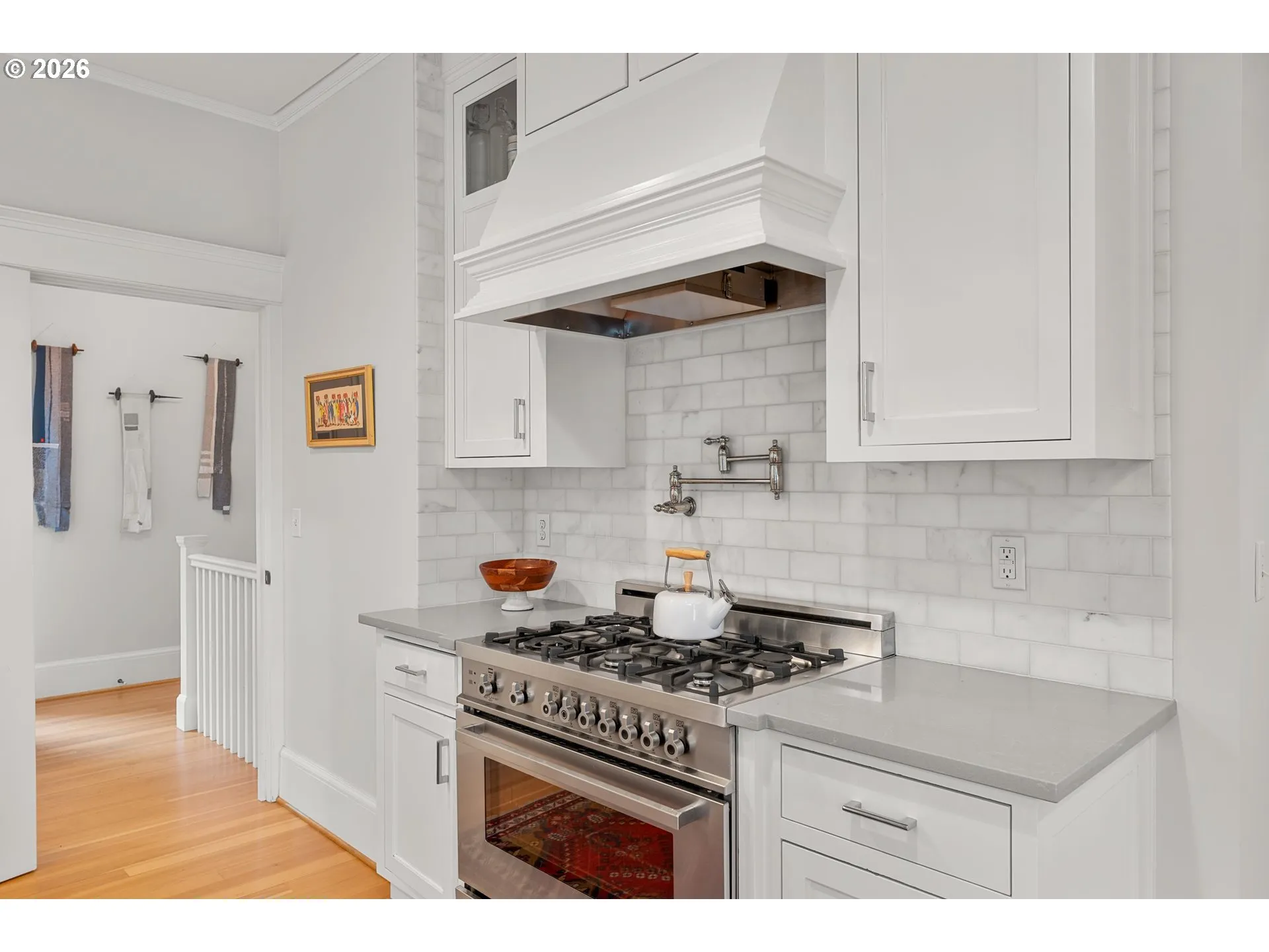 Welcome to 2264 NW Kearney Street, a stunning restoration that perfectly blends timeless vintage character with thoughtful modern updates, ideally located in the heart of Portland’s coveted Alphabet District. Just around the corner from the vibrant energy of NW 23rd Avenue—with its renowned shops, restaurants, and cafés—you’ll find yourself literally steps from neighborhood favorites like Bamboo Sushi and Salt & Straw.Inside, the home showcases beautifully preserved period details paired with high-end finishes. The main floor welcomes you with an inviting entryway, gleaming fir floors, and a spacious living room highlighted by a stunning bay window with classic leaded glass. The formal dining room features elegant built-ins and striking box beams, creating a sophisticated space for gatherings and entertaining.The kitchen is a true chef’s dream, featuring expansive counter space, quartz countertops, a Carrara marble backsplash, custom inlaid cabinetry, and stainless steel appliances—including a gas range with pot filler and a custom hood.The primary suite offers a luxurious retreat with a double vanity, Carrara marble finishes, and a large walk-in shower. Two bedrooms and two bathrooms are conveniently located on the main floor, providing flexible living options.The beautifully finished lower level offers incredible versatility, featuring stylish tile floors, a spacious bathroom, and a large walk-in closet. With its separate living space potential, the lower level is ideal for guests, an Airbnb, or a full-time rental—providing both comfort and income potential in one of Portland’s most desirable neighborhoods.Secure off-street parking completes this exceptional property.