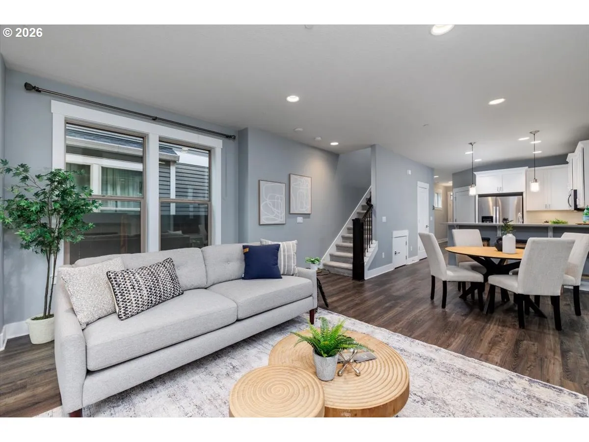 Better Than New in Creston–Kenilworth! Certified Earth Advantage home featuring modern conveniences, sustainable design, and quality craftsmanship throughout. The spacious primary suite offers a high coved ceiling with crown molding, double sinks, a tiled shower, and a walk-in closet. The bright, open great room is filled with natural light and features a cozy fireplace—perfect for relaxing or entertaining. The kitchen showcases slab quartz countertops, custom built-ins, and stainless steel appliances. All appliances stay, including the refrigerator, washer, and dryer. Additional highlights include a tankless water heater and central A/C to keep you cool during Portland summers. Enjoy an unbeatable location—walk to parks, restaurants, and shops. Biker’s Paradise score of 96! Sustainable, energy-efficient living with no HOA. [Home Energy Score = 9. HES Report at https://rpt.greenbuildingregistry.com/hes/OR10176531]