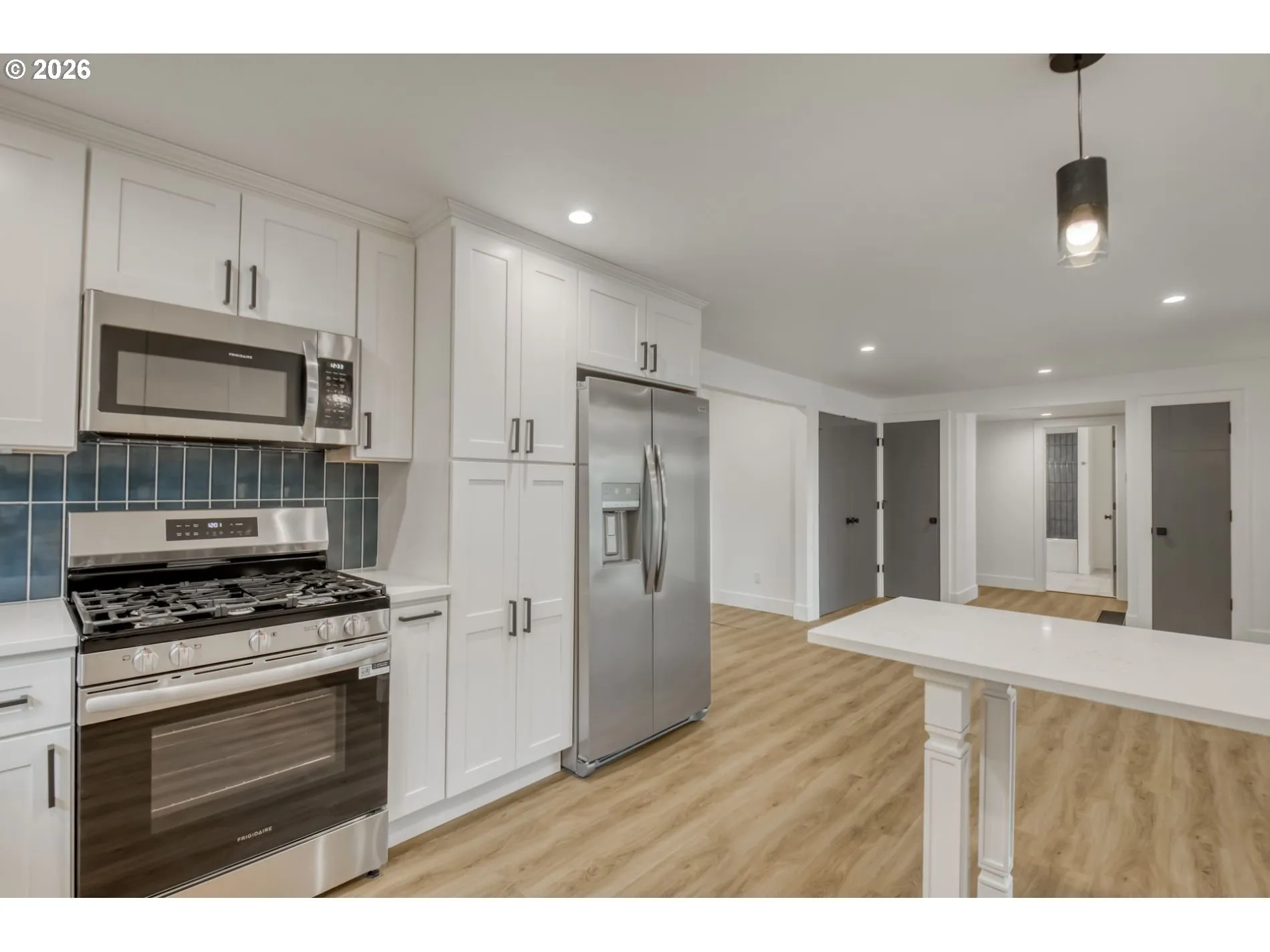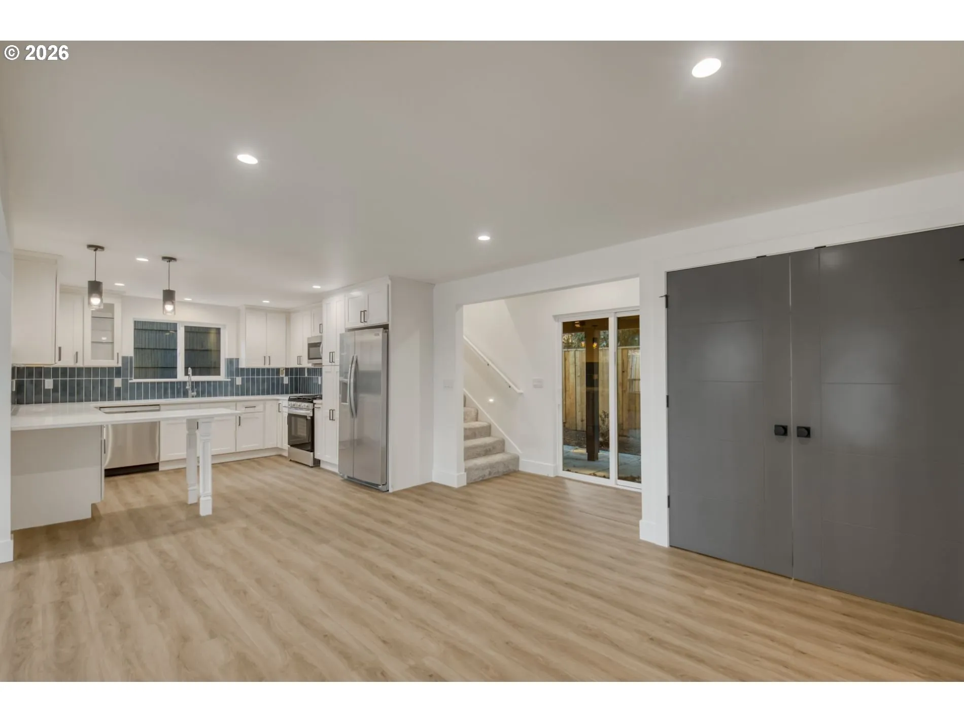 Must-see, top-to-bottom mid-century modern inspired renovation! This stunning home features new: roof, siding, windows, Mini-split for primary bedroom, cabinets, light fixtures, gas fireplace, appliances, 200amp panel, tile in bathrooms, furnace and AC unit, carpet in bedrooms. Enjoy an open floor plan designed for entertaining, with beautiful mid-century–inspired finishes, plus covered front and back patios. The primary suite is truly one of a kind, and the living room is an absolute showstopper. Fresh landscaping and new fencing complete the exterior. The separate finished space has a bathroom, wet bar, and separate laundry room. This one-of-a-kind property is an entertainer’s delight and a must see.
