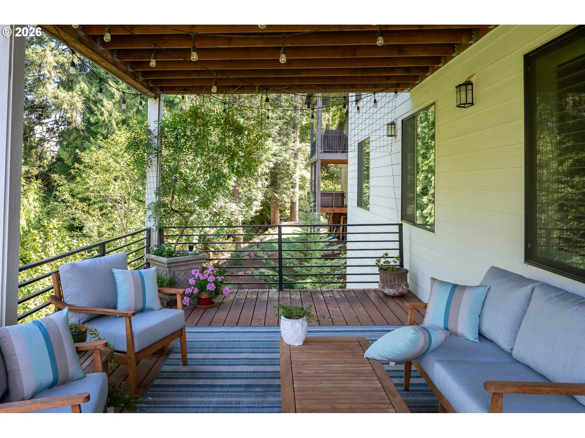 Turnkey luxury and private greenspace views define this equisitely appointed Ridgefield dayranch! Sitting on one of the most desirable lots in a former Parade of Homes neighborhood, the property features high ceiligs, top-of-the-line engineered hardwoods, high-end stainless appliances, custom millwork and fixtures, floor to ceiling cabinetry, a 220 outlet for EV charging in the garage, a Culligan water conditioner, and quartz countertops. Open concept floorplan with gas fireplace and oversized windows provides abundant natural light and flows seamlessly into the expansive covered outdoor living, which features a 200 sq ft+ covered entertainment deck and a gas grill hookup. Main level living includes an office and formal dining room, while the large primary suite boasts a dual vanity, a walk-in tile shower, a soaking tub, and a large walk-in closet with custom organizer. Lower level offers a large bonus room, a wine cooler, a large outdoor deck, and 2 additional bedrooms with a full bath- perfect for dual living or entertaining! Home has a massive footprint with unlimited possibilities for additional living space. The property rests along the Gee Creek natural greenbelt and offers privacy and tranquility while being just minutes from downtown Ridgefield and I5. Come enjoy turnkey ease-of-living while enjoying the privacy and breathtaking canopy views!