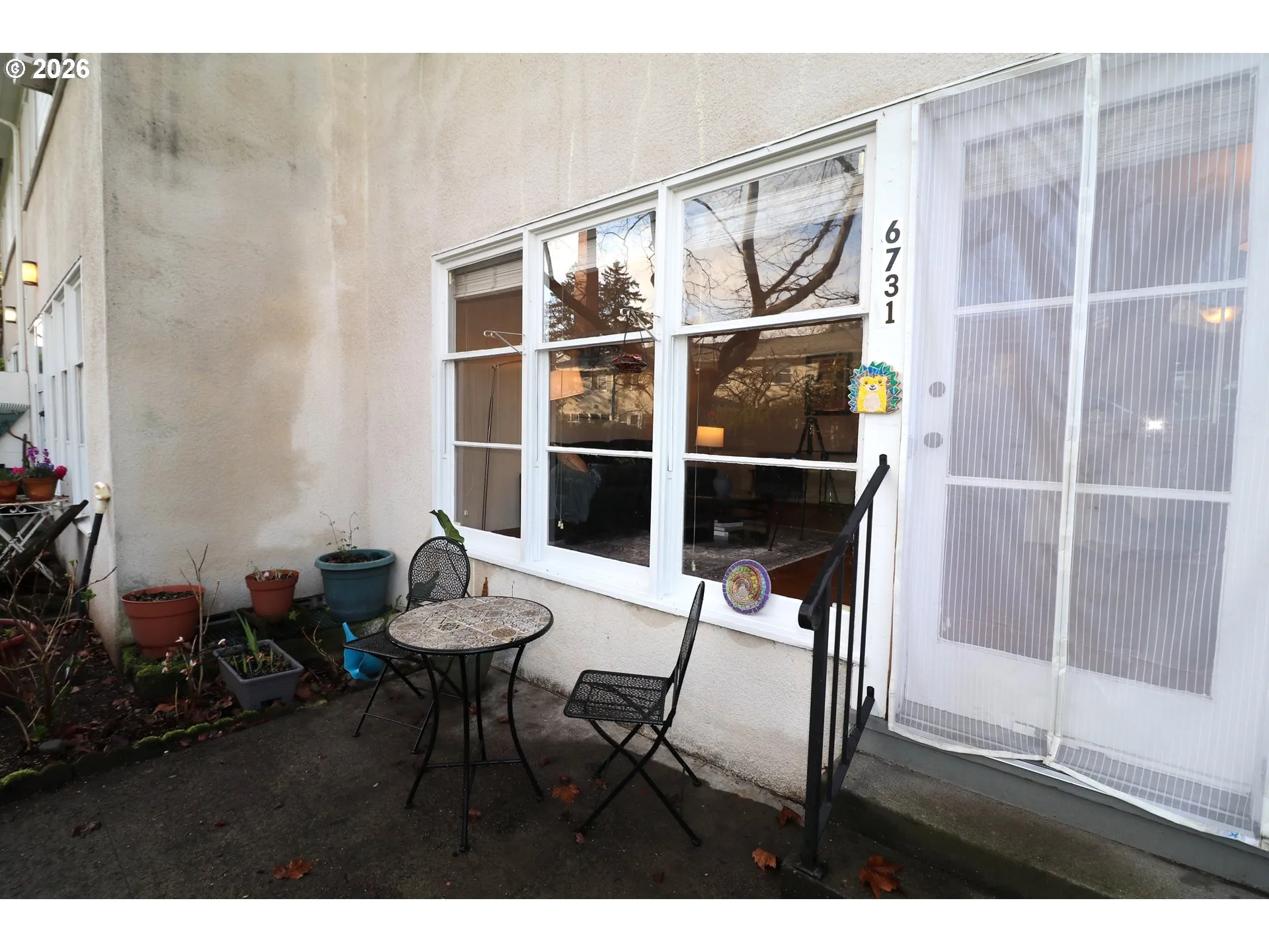 Welcome to The Binford Condominiums, where vintage design, eclectic details, and historic charm define everyday living. Set on 9 acres of lush landscaping, the community features intimate pathways, beautiful courtyards, and a peaceful atmosphere that makes your home feel like much more than just an address.This 2-bedroom, 1-bath townhouse-style condominium offers an open floor plan with floor-to-ceiling windows on the main level, filling the home with natural light. Hardwood floors run throughout both levels, adding warmth and character to the space. The unit also includes deeded parking and a dedicated storage area.Located in the desirable Rose City Park neighborhood of NE Portland, the community offers both charm and convenience.The HOA fee includes heat, water, garbage, and building and grounds maintenance, providing easy, low-maintenance living. Common laundry facilities are conveniently located in each building.