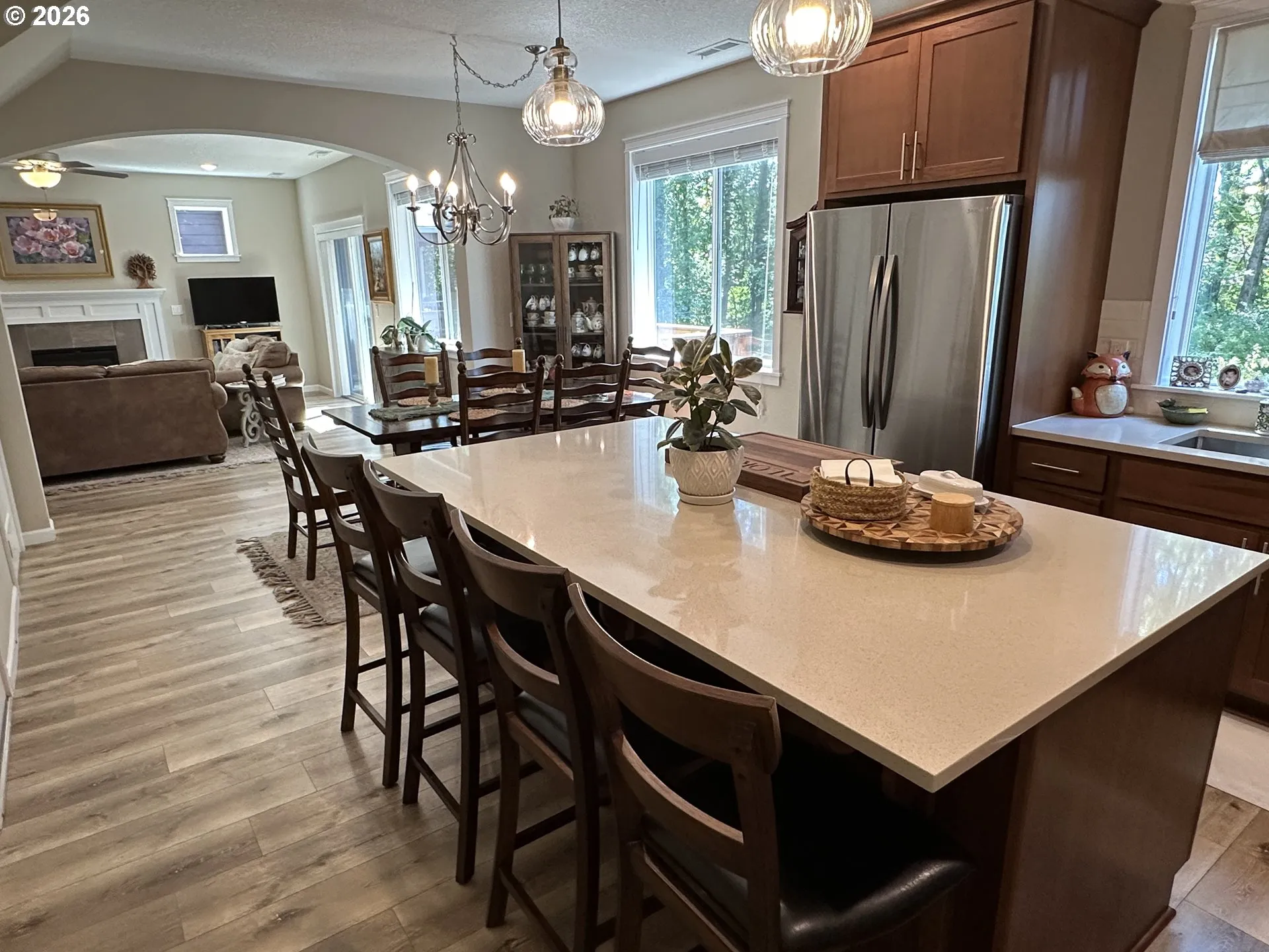 Open Sunday 3/15 1:00-4:00pm* Backs to Green Space! Meticulously maintained, terrific 4 Bedroom home with outstanding floor plan; good square footage, thoughtful design, and lots of amenities. Spacious great room with gas fireplace & slider leading to a generous sized deck that overlooks greenspace. Kitchen features quartz counters, gas range, island, & pantry storage. Primary bedroom suite has a wonderful walk-in closet, double vanity, soak tub, step-in shower. Conveniently located upper-level laundry room with built-in cabinets. Front yard with sprinkler system. Peaceful backyard with view of trees and nature. Extremely well-maintained home. Move-in and enjoy.