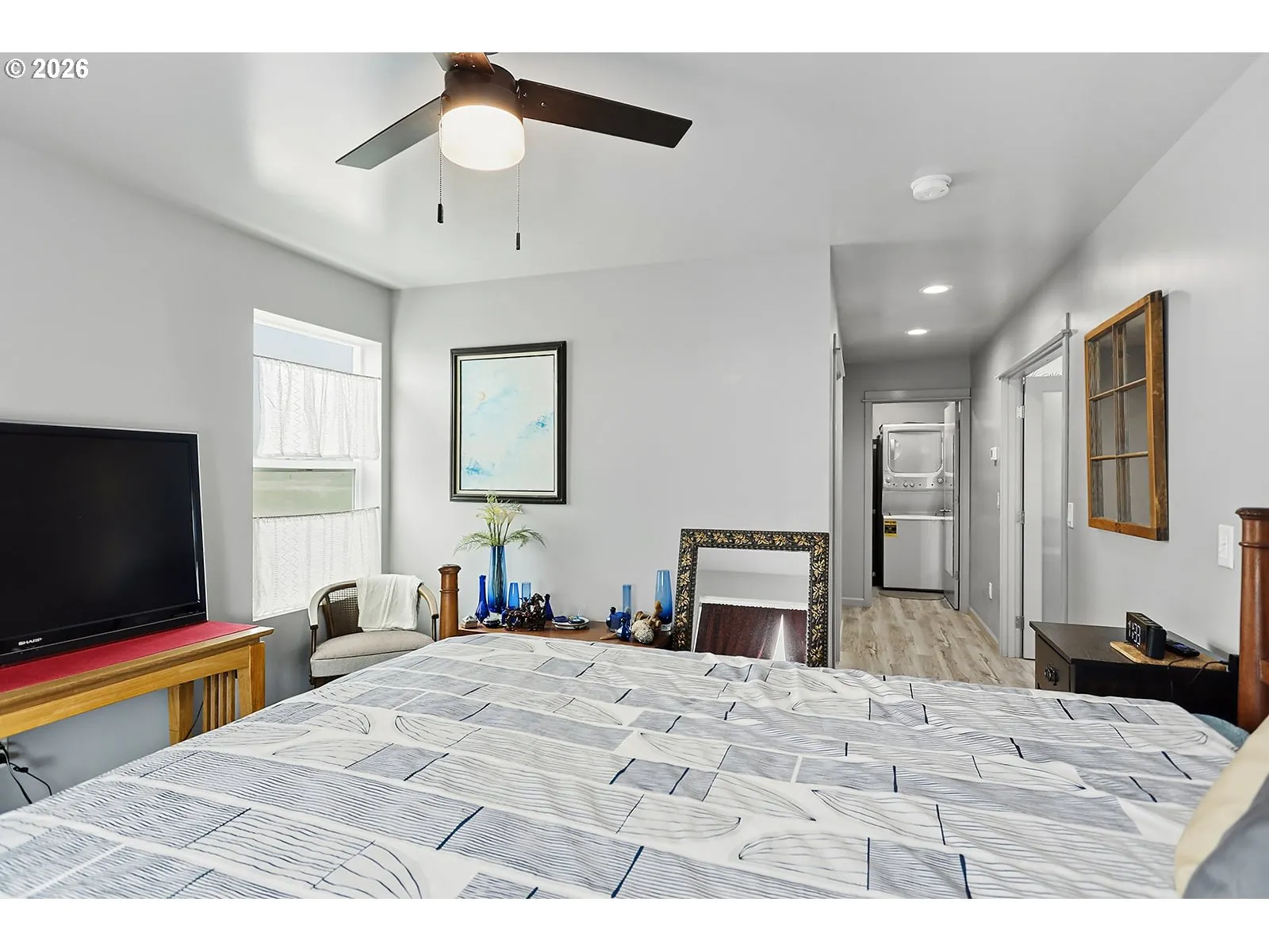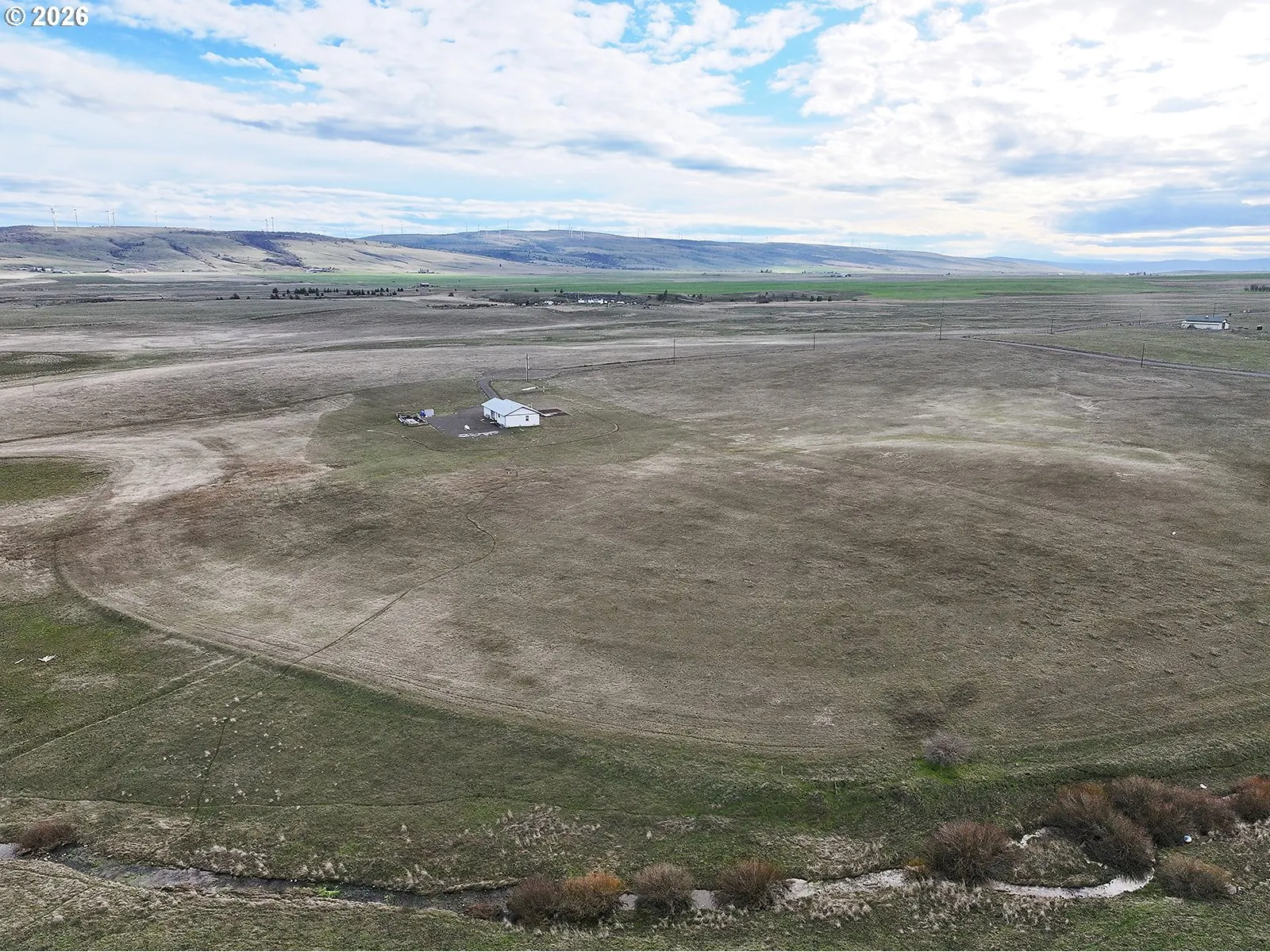 Charming 2-bed, 2-bath home (built 2023) on just over 20 acres — ideal for horse owners and outdoor enthusiasts. The bright, open floor plan features large windows with views of Mt. Adams and Mt. Hood (not visible in photos due to weather). The level lot includes raised garden beds and a seasonal creek, offering easy outdoor access and natural beauty.The home is equipped with a propane furnace, on-demand water heater, propane range, and a whole-house water filtration system. A cozy wood-burning fireplace adds warmth and charm, and a low step-in shower provides accessible bathing. The community’s CC&Rs include equestrian easements and trail-riding access — bring your horse and loved ones to enjoy peaceful country living near the mountains.