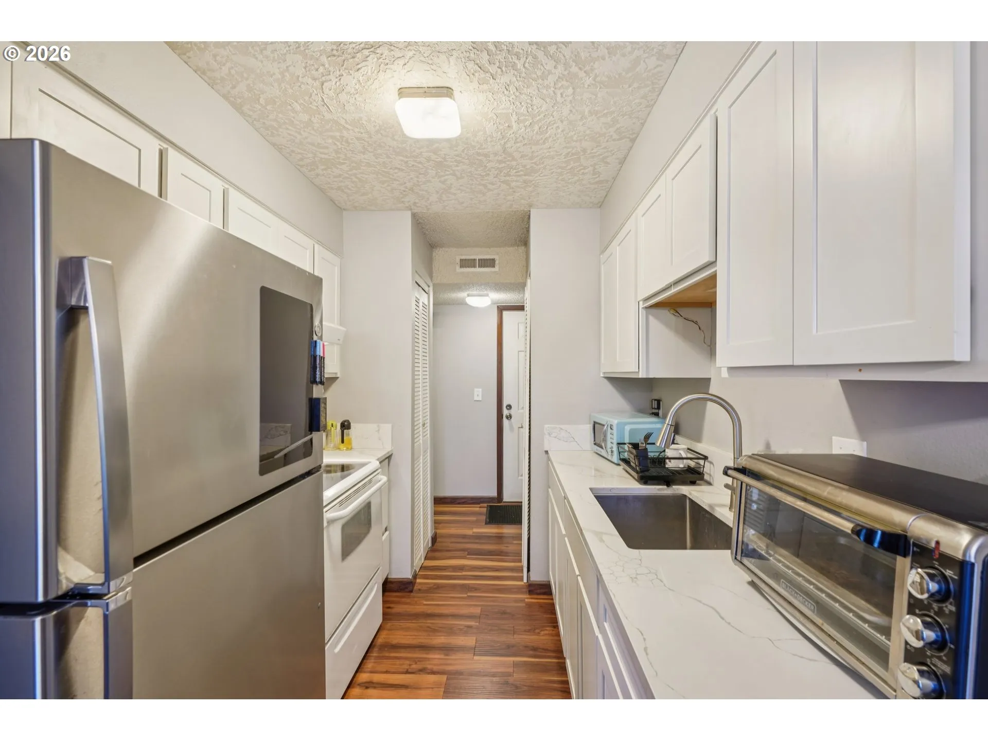Move-in ready and thoughtfully updated, this first-level condo at 3383 NE 162nd Ave in Portland pairs fresh, modern finishes with relaxing views of the grounds from your own patio. Inside, newer engineered vinyl plank flooring and a freshly painted interior create a clean, cohesive feel, while the living room fireplace anchors the space for cozy nights and easy entertaining.The kitchen is designed for everyday function with quartz countertops, a pantry, and a dedicated dining area that keeps meals and gatherings comfortable and connected. Practical upgrades add confidence, including plumbing and electrical improvements with all-new outlets, plus a furnace that has been recently cleaned and serviced. Step through the slider to the outside patio and enjoy an open outlook to the common area, a simple way to extend your living space for morning coffee or an evening reset.Beyond the front door, exterior updates such as newer paint, a newer roof, and vinyl windows support low-maintenance ownership. Guest parking and additional storage are included, and with most utilities covered by the HOA, your monthly budgeting can feel more straightforward. Community amenities add day-to-day value, with park-like grounds, a community garden, tennis courts, and a clubhouse that expand how you can use your time at home. A $150 new owner registration fee applies.