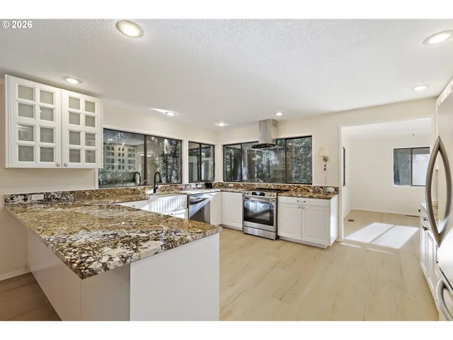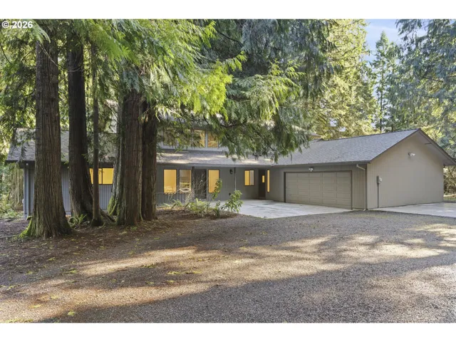 Tucked away on nearly 7 acres of serene, forested privacy, this spacious property offers the perfect blend of comfort, functionality, and natural beauty. Surrounded by mature trees and peaceful views in every direction, the home is filled with windows that frame the landscape and invite abundant natural light throughout. The spacious kitchen features granite countertops, stainless steel appliances, laminate flooring, and generous prep and storage space—ideal for everyday living and entertaining. A nearby laundry room with full sink and full bath adds everyday convenience. Sliding doors from both the living room and kitchen provide easy access to the back deck and expansive yard, creating seamless indoor-outdoor living. The impressive family room showcases soaring ceilings, floor-to-ceiling windows, and a fireplace, making it a stunning gathering space. Two bedrooms are located on the main level, including the primary suite, offering flexible single-level living. Upstairs, a banister overlooks the family room below and leads to three additional spacious bedrooms and a full bath, providing plenty of room for guests, work-from-home needs, or hobbies. Outside, the property truly shines with a large two-car garage, RV parking with covered storage, a barn, and a shed—perfect for equipment, animals, recreational toys, or workshop space. With open areas that provide space for a pasture to host livestock and animals, this property offers incredible potential for hobby farming or country living. Enjoy the peace, privacy, and endless possibilities this exceptional acreage offers, all while remaining within reach of everyday amenities. Easy access to the Banks Vernonia Linear Trail just across the road.