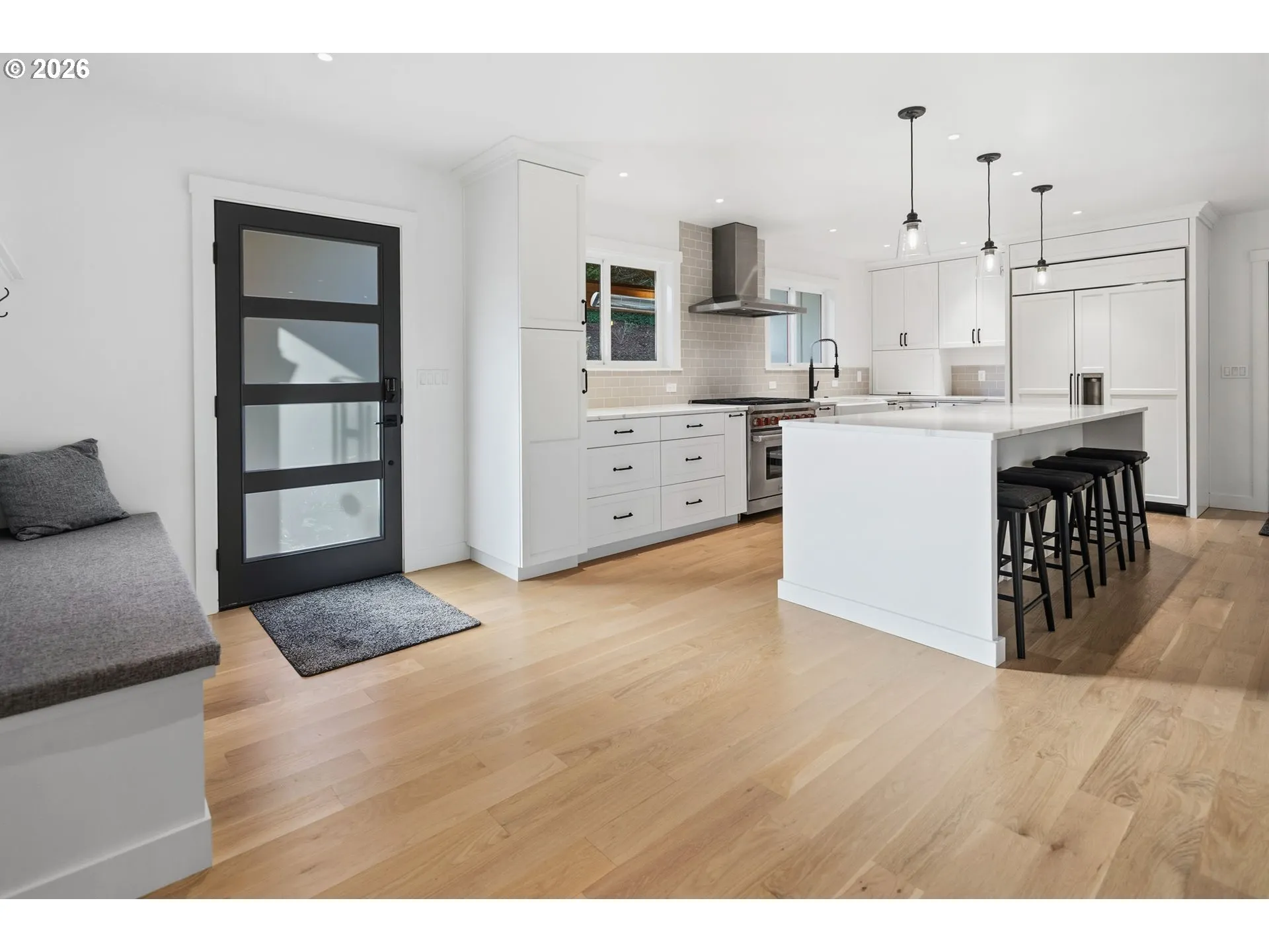 Tucked at the end of a quiet cul-de-sac in prestigious Dunthorpe, this beautifully updated 1951 residence offers a rare combination of privacy, scale, and timeless design on a generous .44-acre lot near Riverdale schools. Thoughtfully reimagined for modern living, the home features light-filled gathering spaces, a welcoming living room with floor-to-ceiling windows and a gas fireplace, and a refined kitchen with quartz countertops, a central island, and premium Wolf, Bosch, and SubZero appliances. A main-floor primary suite enhances everyday comfort, while additional bedrooms and flexible living space extend to the lower level. Inviting outdoor areas—including a cedar-paneled covered front porch and an expansive back patio overlooking a tiered yard—complete this elegant offering in one of Portland’s most desirable settings.
