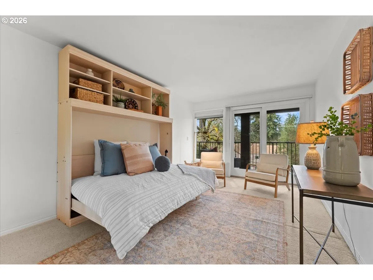 Welcome to The Peg Tree, an intimate 10-unit building in Lake Oswego, where refined living meets scenic views. This third-floor residence captures Mt. Hood views and a peek of the lake from two private balconies, including one with radiant heat for extended seasonal enjoyment. The open-concept living area is anchored by a modern gas fireplace, creating a warm yet sophisticated gathering space. The kitchen showcases granite countertops, a gas stove, brand-new dishwasher, warming drawer, and generous cabinetry, thoughtfully designed for both everyday living and effortless entertaining. The spacious primary suite offers direct balcony access and a walk-in shower. A guest room with a built-in Murphy bed also opens to a balcony, providing flexible living options. An additional room with a custom built-in desk creates a dedicated home office or creative workspace. Elevator access, two deeded parking spaces, private storage room and a heated swimming pool enhance the ease of ownership, ideally situated near the shops, dining, and parks of downtown Lake Oswego. Rarely do Lake Oswego condos combine Mt Hood views, multiple outdoor living spaces, and the intimacy of a 10 unit building, making this home a special opportunity in one of the area’s most desirable locations. OFFER RECEIVED. DEADLINE FOR ALL OFFERS IS 3/7 BY 5 P.M..