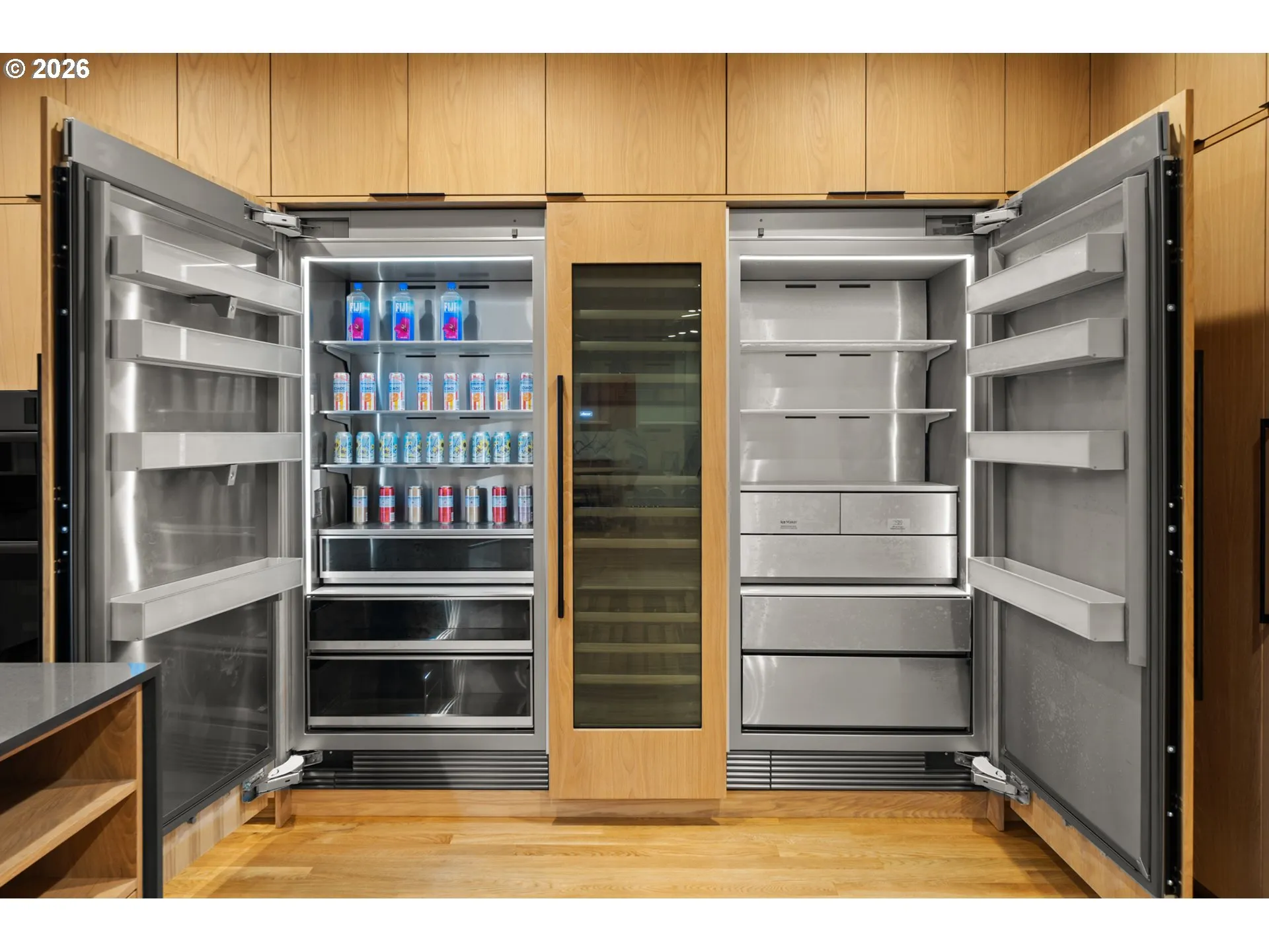Designed by a professional architectural designer, Regency Residence stands as one of the northwest’s most distinctive residential offerings, where modern design, form, andfunction blend with the surrounding natural landscape. Thoughtfully carved into a hillside of a prominent Street of Dreams neighborhood, this home spans three seamless levels of contemporary lavish living, designed to maximize privacy without compromising panoramic views. A striking façade of handselected stained cedar siding and seamless smooth Hardie panels sets the stage for an interior flooded with natural light through floor-to-ceiling windows and 12’ stackingsliders that blur the line between indoor and outdoor living. The gourmet kitchen showcases a dramatic 13′ quartz waterfall island, custom white oak cabinetry, and professional Dacor graphite appliances including 48” range, dual column refrigeratorand freezer, and wine storage. An expansive great room features a see-through fireplace, designer light fixtures from Tom Dixon and Louis Poulsen, and connects easily to covered patios, an outdoor kitchen-ready space, firepit, and a rooftop deck with southernmountain views. The flexible layout adapts effortlessly to a variety of lifestyles. The private primary suite is a true retreat with a soaking tub, double walk-in shower, and boutique-style custom closet. Bathrooms throughout are elevated with luxury tiles and fixtures by Dravit, Axor, Graff, and Hansgrohe. Additional highlights include a formal living room,large den, office, wet bar, 3-story custom oak staircase with linear lighting, oversized EV-ready 3-car garage with shop, and powder room. Recent upgrades include a tankless water heater, Carrier HVAC, and other energy-efficient systems throughout. Perched on a corner lot in a premier location near top-rated schools, local food carts, shopping, and miles of nearby parks and trails, Regency Residence offers a rare blend of architectural design and everyday convenience.