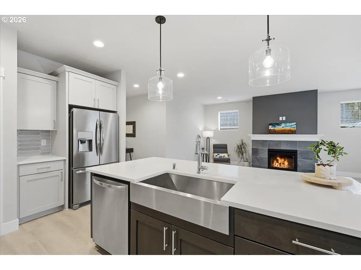 Beautiful 4-bedroom, 3-bathroom home built in 2022, meticulously maintained and truly move-in ready. This thoughtfully designed floor plan features a spacious great room filled with natural light, high ceilings, and quality finishes throughout.The kitchen is designed to impress, showcasing 3 cm slab quartz countertops, subway tile backsplash, stainless steel appliances, gas cooktop, a large island with eating bar, and spacious pantry.Just off the entry, two bedrooms share an adjoining full bath, ideal for guests or a home office set up. The primary suite is complete with double sinks, a soaking tub, walk-in shower, stylish tile accents, and a generous walk-in closet. The fourth bedroom is privately situated down its own hallway. Additional features include a cozy fireplace, laminate plank flooring, an oversized laundry room, motorized retractable awning, energy-efficient heat pump with A/C, a 3-car garage with ample storage, and fully landscaped grounds with fencing and a sprinkler system for easy maintenance.Located in the desirable Creekside Heights community, just under a mile from downtown Battle Ground, this home reflects true pride of ownership and is ready for its next chapter.