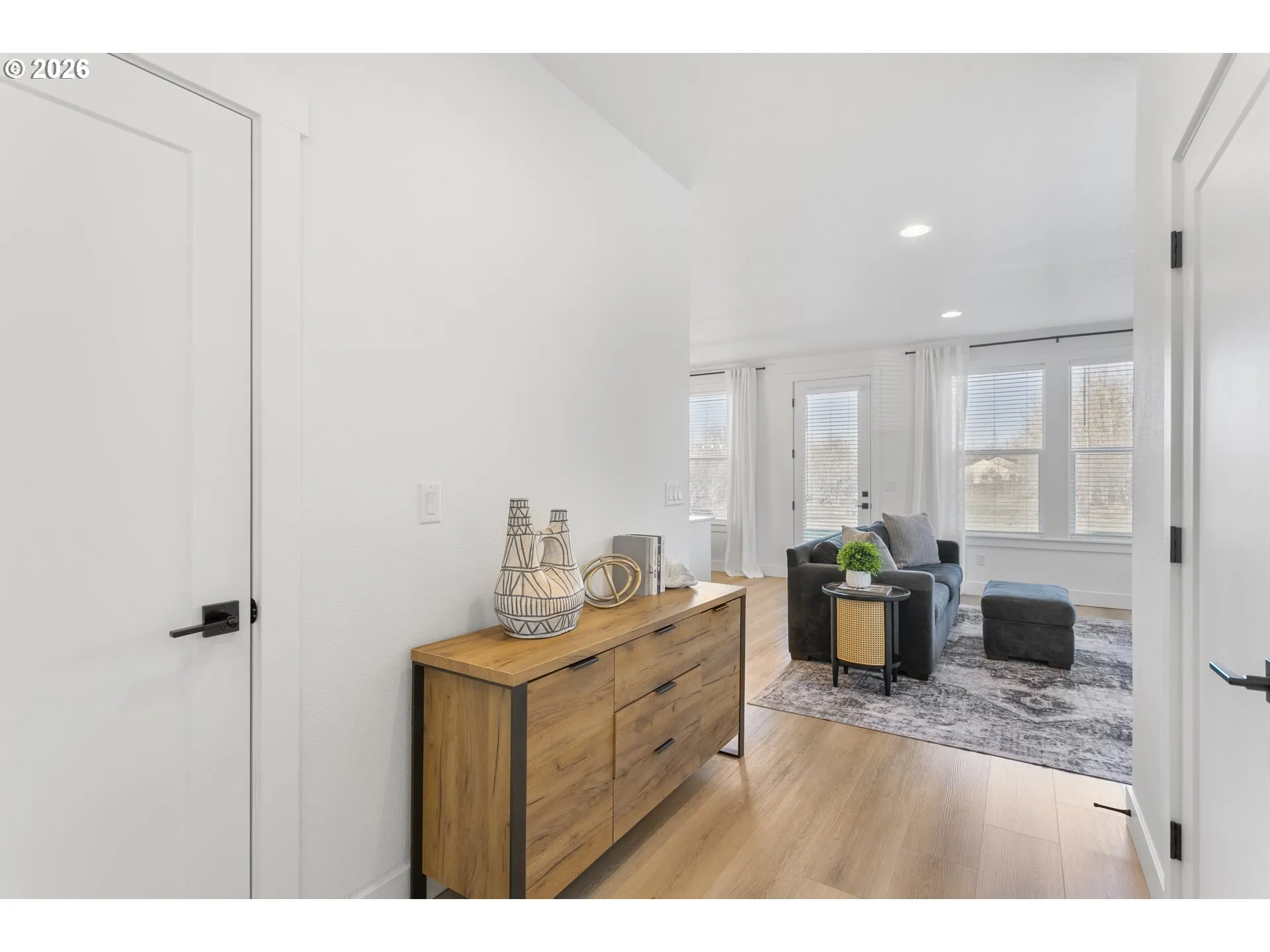 Discover modern comfort in this beautifully crafted 2022 townhome in Battle Ground. Thoughtfully designed with a cozy yet refined farmhouse feel, the home features marble, quartz, LVP, and tile finishes throughout. The open-concept kitchen offers a large island, stainless steel appliances, and quartz countertops—perfect for everyday living and entertaining. High ceilings create a bright, open atmosphere, while generously sized rooms provide comfortable living spaces.The primary suite is filled with natural light and includes a double-vanity bath with a walk-in shower. Tucked away on a private dead-end, the home backs to a peaceful wetland field, offering both privacy and scenic views. Located just minutes from Lewisville Park and Daybreak Park & Boat Launch, and within easy reach of shopping at Battle Ground Market Center and West Main Commons, this townhome offers the perfect balance of quiet living and everyday convenience.