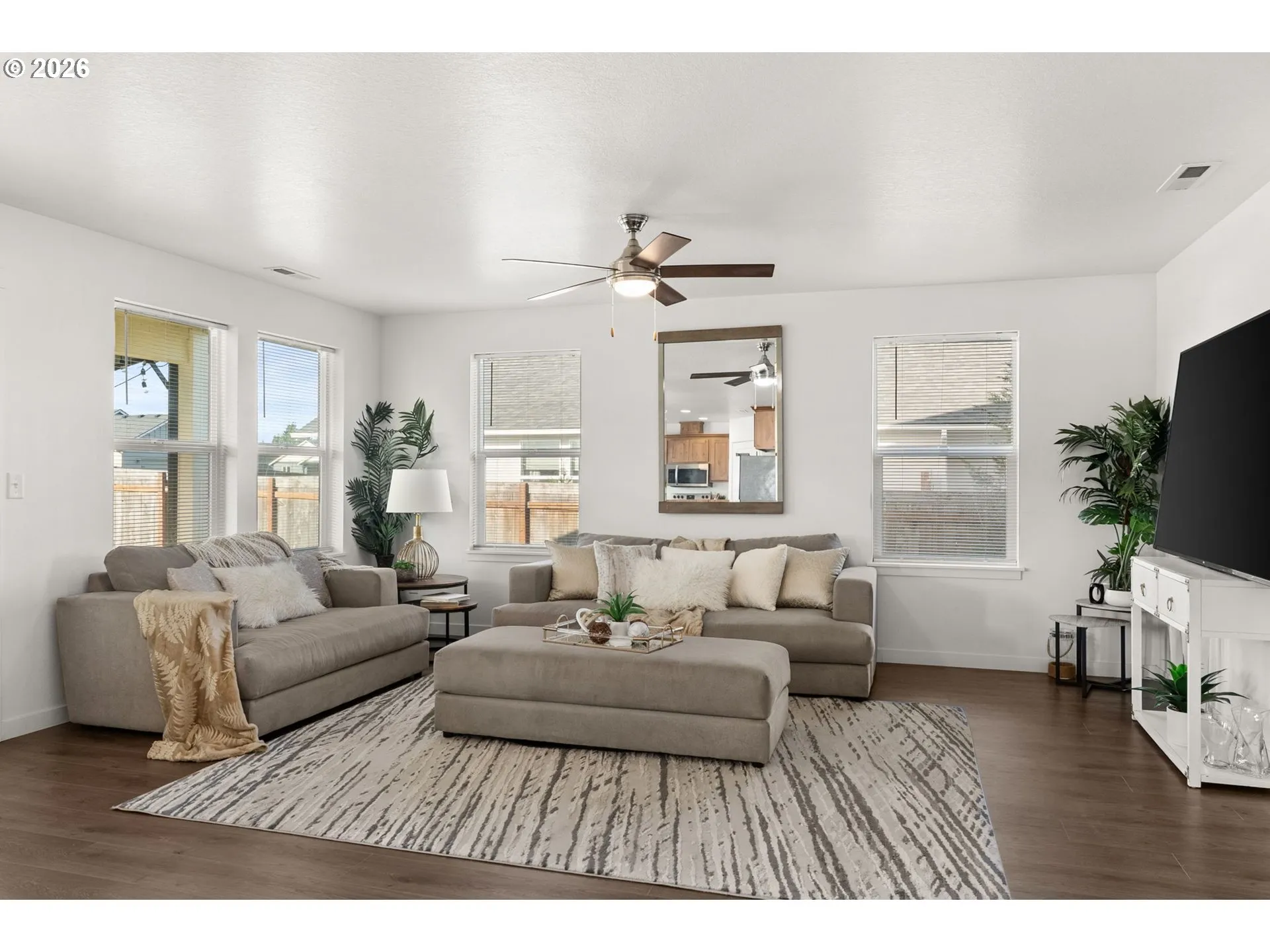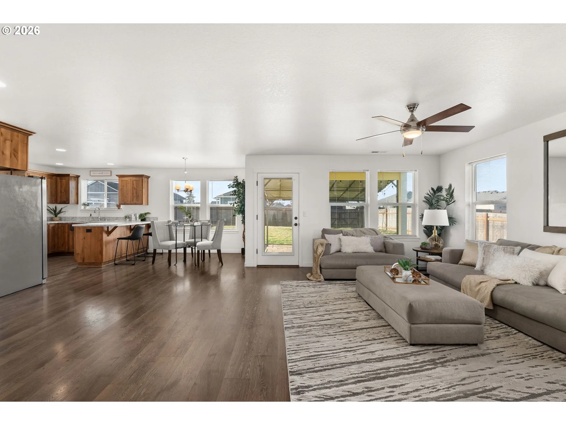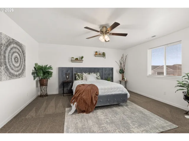 Tucked into the heart of Grand Prairie Estates, this inviting 4-bedroom, 2.5-bath home blends everyday comfort with thoughtful touches that make life just a little sweeter. Sitting on just under 1/5 of an acre, the fully fenced yard offers space to play, garden, entertain, or simply just exhale. A double gate entry with alley access allows you to pull a vehicle directly into the backyard, opening the door to endless possibilities for hobbies, toys, or weekend projects. Inside, laminate floors lead you through light-filled living spaces, accented by ceiling fans throughout for effortless comfort. The primary suite is a true retreat, complete with a private en-suite bath and walk-in closet, your own space to unwind at the end of the day. A heat pump provides efficient heating and air conditioning, keeping this home comfortable in every season. Step outside to the covered back patio with extended coverage and pavers, perfect for summer BBQs, cozy fall evenings, or morning coffee no matter the weather. A charming covered front porch adds curb appeal and a welcoming first impression, while the two-car garage offers convenience and storage. Located just 3 minutes from the interstate, this home makes commuting a breeze while still offering a neighborhood feel, complete with a community park and playground. A place to gather, grow and make memories, this Grand Prairie Estates gem is ready to welcome you home.