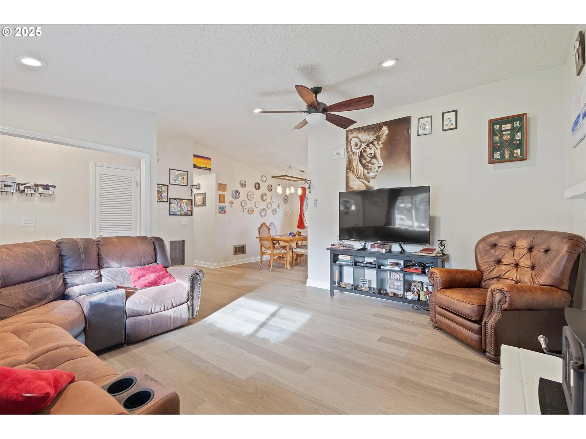 This is your second chance to own to this beautifully updated one-level home on a spacious lot that backs to peaceful greenspace and the nearby primary school. Back on the market due to buyer circumstances, sellers not a fault. The bright, open floor plan and vaulted ceilings create an inviting flow from the moment you enter.The home features all new trim and flooring throughout, complementing the updated kitchen with butcher block counters, a charming farm-style sink, and a double oven. The vaulted living room centers around a cozy woodstove that adds warmth and character.The primary suite includes hardwood floors and a private bath with stone counters and a walk-in shower. Two additional generous bedrooms plus a versatile home office offer plenty of flexibility for work, creativity, or quiet downtime.The oversized backyard feels wonderfully private with mature landscaping, a level lawn, and a covered patio perfect for relaxing mornings or unwinding in the evening. A two-car garage and room for RV parking provide extra convenience and space for future hobbies.This home blends comfort and charm in a setting that makes everyday living feel easy and peaceful.