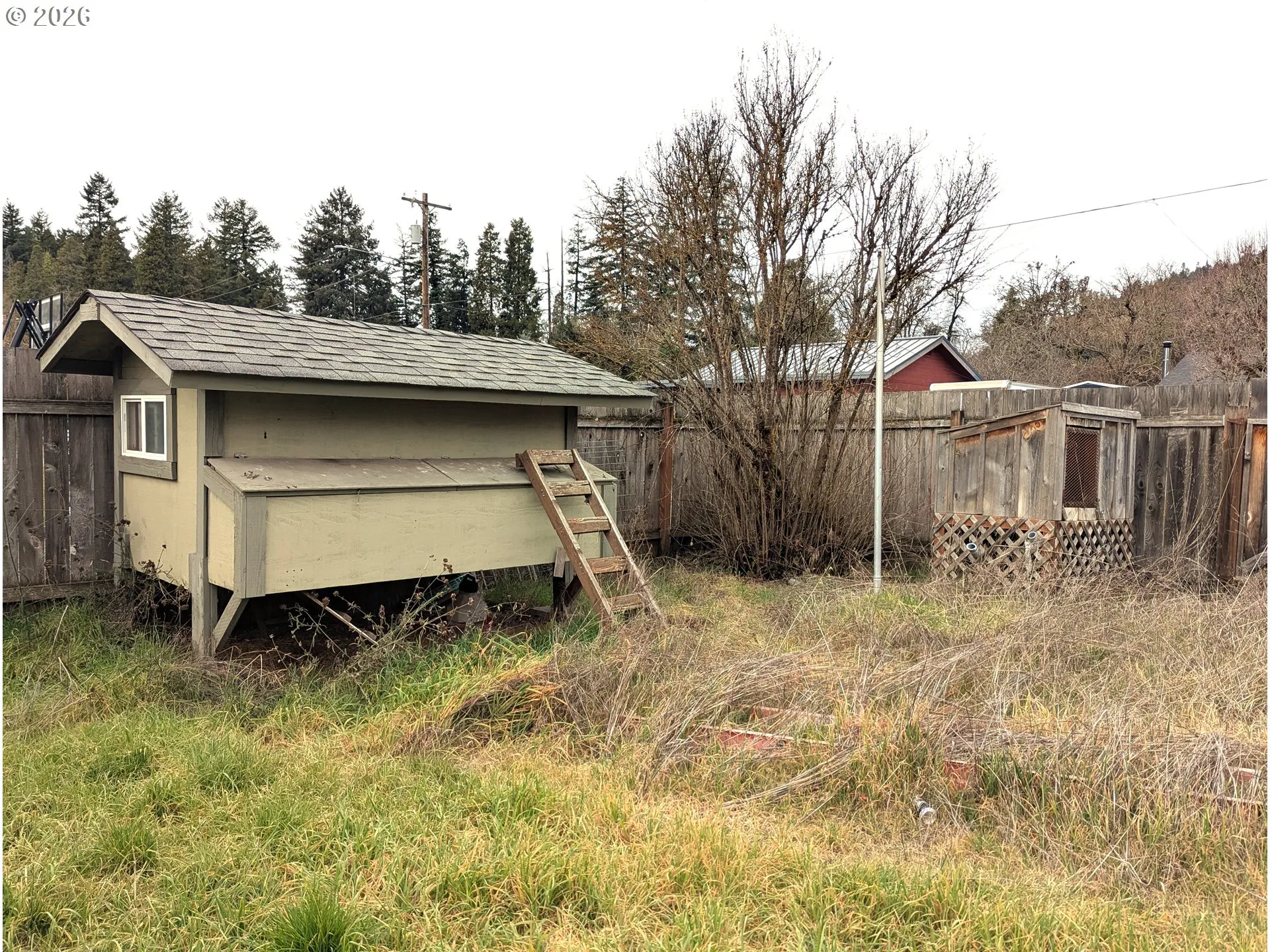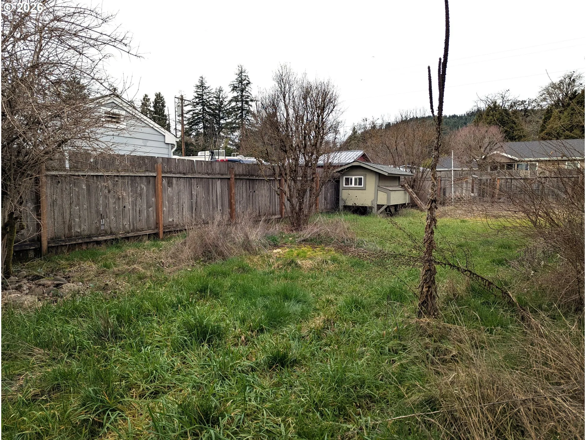 Fantastic location near Salmon Creek Park and Uptown Oakridge. This single level home has a remodeled kitchen with tile floor, solid granite counters, stainless appliances, built-in microwave, garden window and pantry. Dining room with vinyl slider to paved patio and backyard. Updated main bath has custom tile and dresser-style double vanity. Original fir floors and craftsman touches throughout. New roof (DaBella), newer electrical panel, vinyl windows, and a pellet stove for warmth and efficiency. Separate laundry/mud room has second bath (toilet and shower). Covered breezeway (22′ x 30′) between house and oversized garage has a poured concrete floor with a working hot tub and allows for outdoor living all year round. Generous, level, fenced, corner lot includes a workshop shed, chicken coop, bunny hutch, dog house, wisteria-covered arbor and swing, and raised beds with established berry bushes. Neighborhood access to Salmon Creek levee trail and community garden. Discover the amazing recreational opportunities that the greater Oakridge area has to offer right outside your own front door — hiking, biking, skiing, fishing, boating, disc golf, ATVing — it’s all here! A great value at this price!