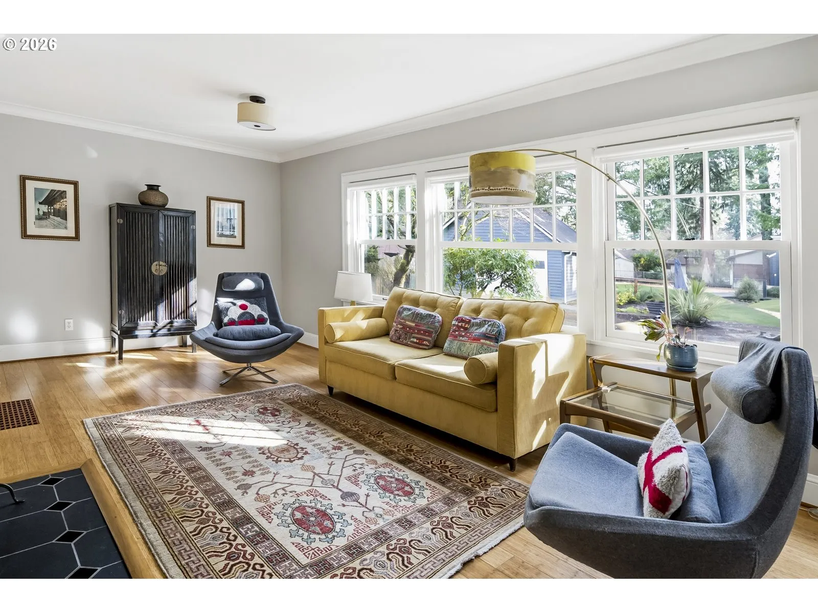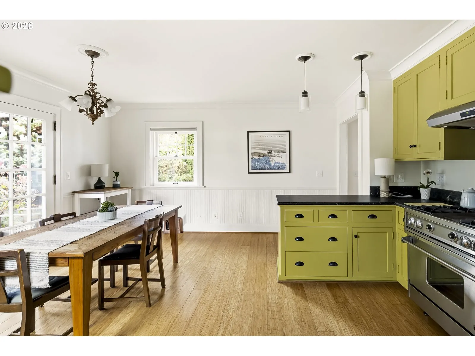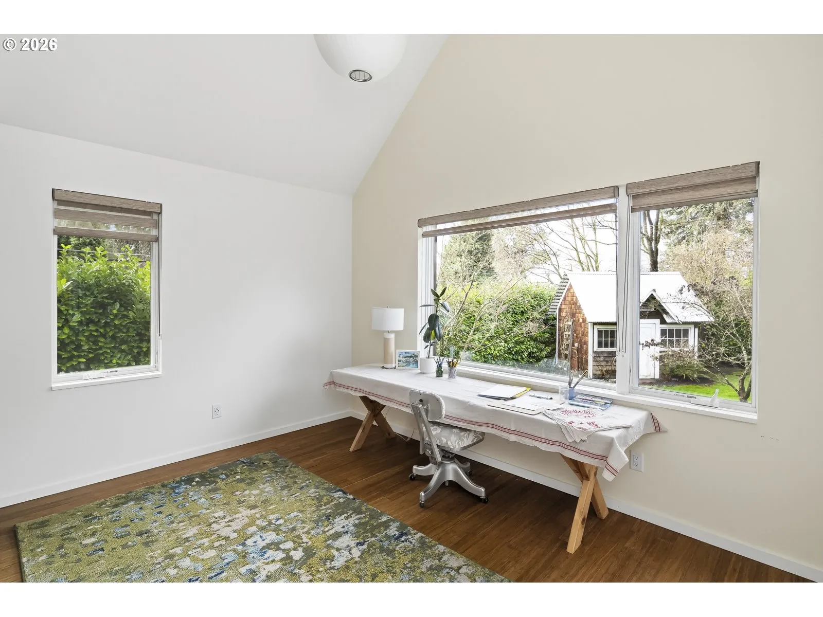 This is the one you’ve been waiting for! A modern farmhouse that effortlessly marries timeless character with smart, contemporary updates. At the heart of the home is a beautifully updated, multi-functional kitchen with soapstone countertops, a chef’s Dynasty gas range, and eat-in dining, flowing seamlessly onto a large, covered back deck — perfect for indoor-outdoor living overlooking the private, tree-lined backyard. The primary suite on the main level is part of a stunning, newly added modern wing with a full ensuite bath and walk-in closet- a true retreat. Also on the main floor is a bonus bedroom or office with a picture window overlooking the lush backyard, plus a dedicated laundry room and mudroom for everyday ease. Upstairs offers an expansive landing area, full bath, and two additional bedrooms – one with a skylight and impressive closet, the other with a darling, all wood, built-in daybed with secret cubbies. and an expansive landing with more built-in storage. Enjoy year-round comfort with a new gas furnace and central AC, while extra-durable bamboo flooring, a wood-burning fireplace, and extensive solid walnut built-ins add warmth. Outdoor living shines with a covered front porch, expansive back porch, open side deck, and fire pit area, all designed to enjoy the beautifully landscaped grounds. A Rainbird irrigation system, adorable garden shed with potting area, and mature greenery enhance privacy and ease of care. A newly built, oversized detached garage offers ample space for parking, gear storage, and a workshop. Ideally set in SW Portland near Garden Home, Multnomah Village, Gabriel Park, and Hillsdale, with access to highly regarded schools, favorite neighborhood dining, and local shopping—this home delivers peaceful living with everyday convenience. OPEN SAT & SUN, FEB 14/15 FROM 12-2PM [Home Energy Score = 2. HES Report at https://rpt.greenbuildingregistry.com/hes/OR10243200]