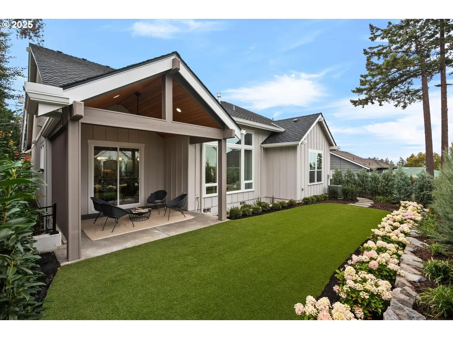 If you’ve been searching for that rare single-level new construction home in desirable Cedar Mill, your wait is over! Experience modern elegance and everyday comfort in this thoughtfully designed 3-bedroom, 2-bath residence featuring high-end finishes and exceptional attention to detail. The welcoming foyer with built-in bench opens to a spacious Great Room with custom built-ins, high ceilings, hardwood floors, and a stunning floor-to-ceiling stacked stone fireplace. The gourmet kitchen impresses with a large quartz island, tile backsplash, double ovens, built-in microwave, warming drawer, and stainless-steel appliances, complemented by a dining area with built-in buffet.The serene Primary Suite offers a designer feature wall, dual-sink vanity with linen storage, walk-in/roll-in tile shower, and generous walk-in closet. Two additional bedrooms, a dedicated laundry room, and a beautifully finished hall bath complete the layout.Enjoy outdoor living on the covered patio with gas hookup for BBQ, surrounded by professionally designed, fully fenced landscaping featuring artificial turf, privacy plantings, sprinkler system, and feature lighting. EV plug, tankless water heater, and central vacuum included. Convenient access to shopping, eateries, schools, and downtown Portland. Listing agent is one of the owners.