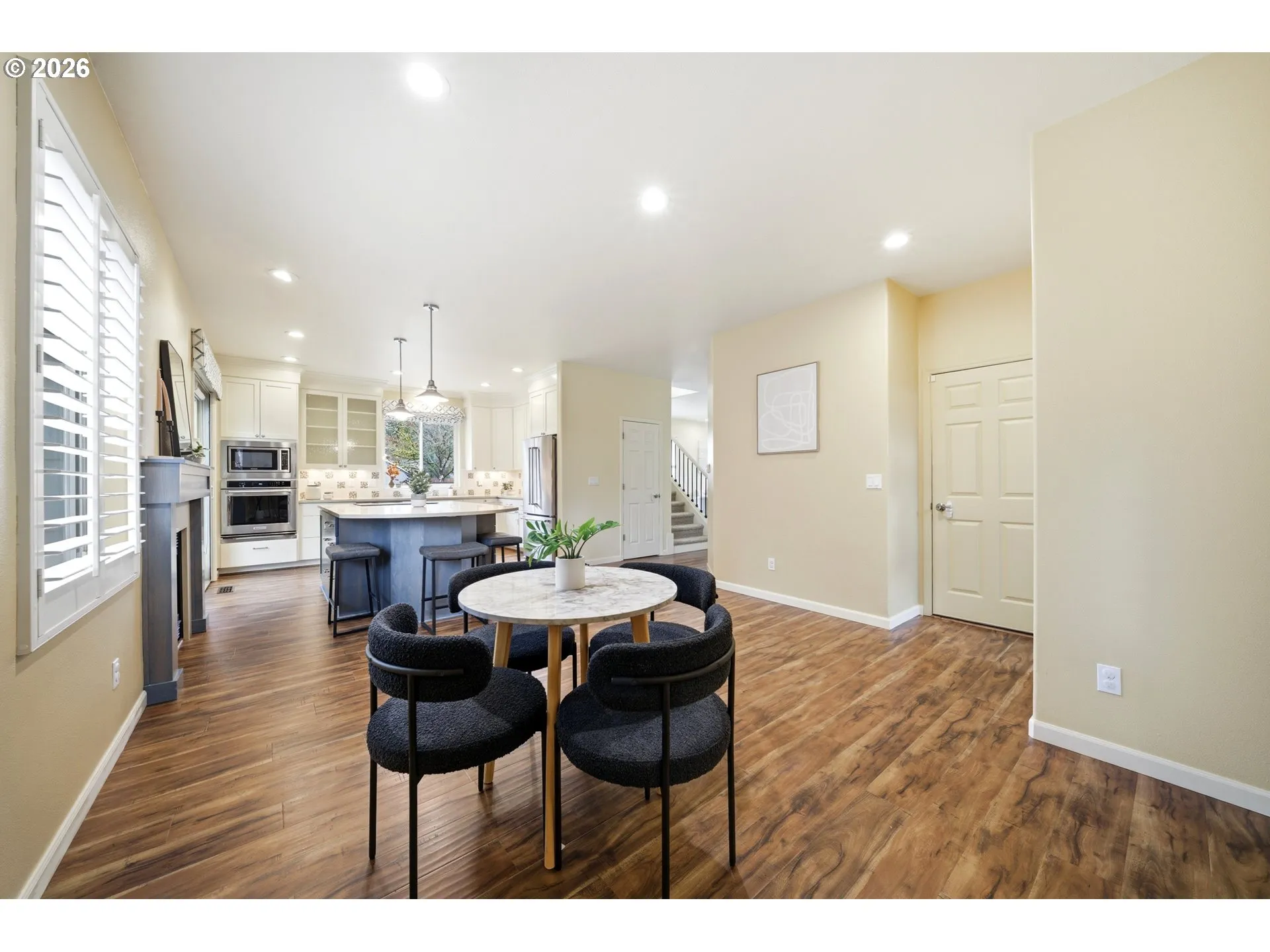 Welcome to this well maintained Salmon Creek home tucked away on a quiet cul-de-sac in a very clean and peaceful neighborhood. Set on a spacious .25-acre greenbelt lot offering plenty of room for entertainment, hobbies and/or hosting. This home features numerous updates including a beautifully updated kitchen with stainless steel appliances, plantation shutters throughout, and a newer roof. The inviting living space is highlighted by a cozy gas fireplace that adds both charm and functionality. Upstairs you’ll find a generous loft space along with a convenient wet bar—perfect for entertaining guests or relaxing evenings at home. The spacious primary suite includes vaulted ceilings, customized closet and an en-suite bathroom with full walk-in tile shower. Step outside to a stunning fully fenced and terraced backyard featuring a stamped concrete patio with a fire pit area, along with a newer multi-level Trex deck —an ideal setting for hosting gatherings and making memories for years to come. Versatile garage space with built in cabinet storage. All of this in an unbeatable Salmon Creek location close to shopping, dining, and everyday amenities. Come check it out today!