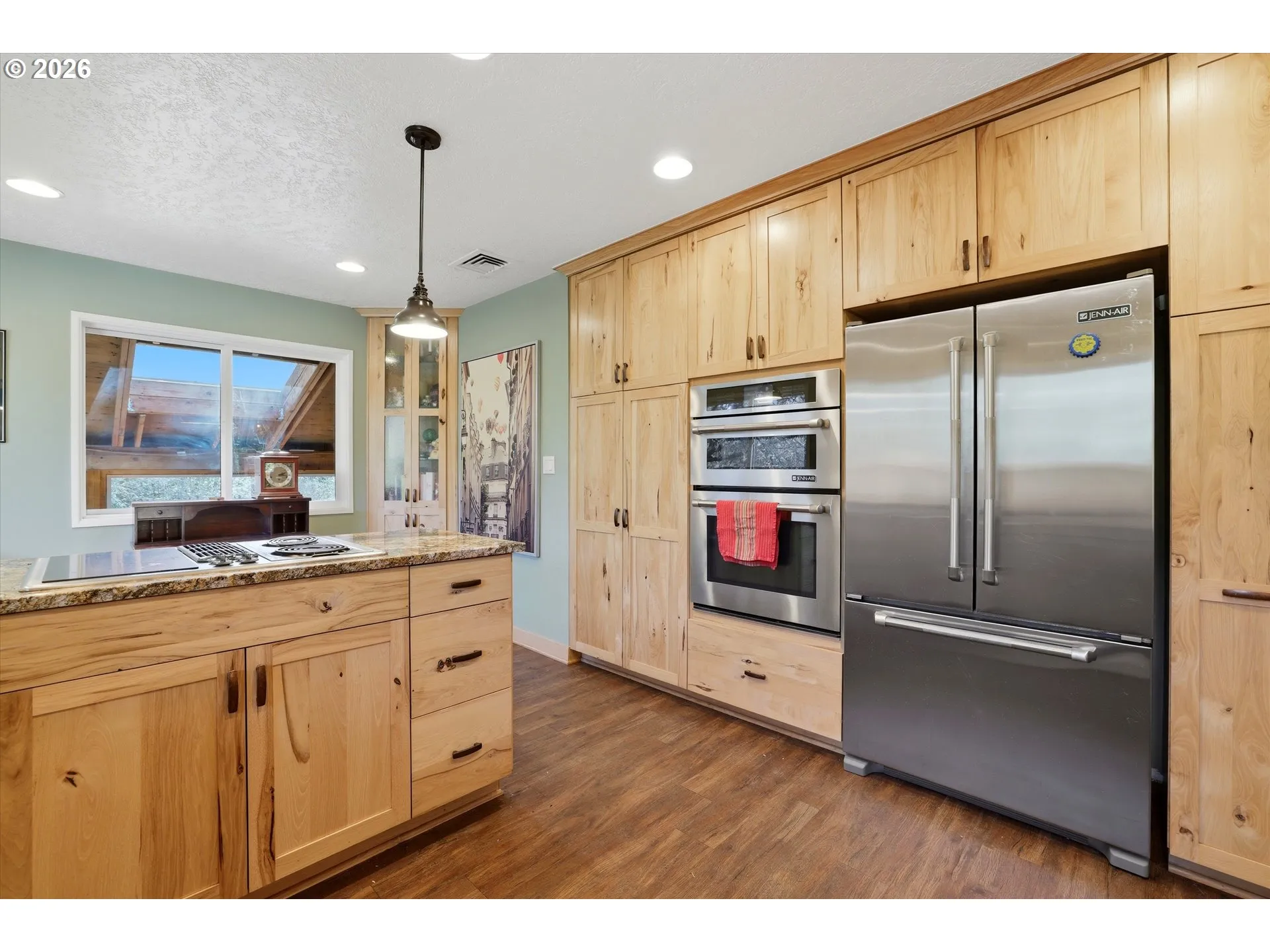 Tucked into a private 4.94-acre setting in Sherwood’s coveted countryside yet minutes from town, this property offers peaceful acreage living with a thoughtfully updated home and flexible spaces for work, hobbies, and animals. The 2-story residence features a light-filled great room with slate flooring, a wood-burning stove, and French doors opening to the deck. The updated kitchen includes granite surfaces, Hickory cabinets,stainless steel appliances, built-ins, an eat bar, pantry, and a convenient built-in desk area ideal for a family workstation.The spacious primary suite features bamboo flooring, a bay window, ceiling fan, large closet, and walk-in closet. The daylight lower level includes three bedrooms, a full bath, French doors or slider to the patio, and generous storage—providing excellent separation of space for multi-generational living, guests, or recreation. Outdoors, enjoy a mix of open ground, established fruit trees, and a seasonal stream, along with a covered patio, garden area, dog run, and tool shed/outbuilding. The attached 2-car garage, parking pad, and long driveway offer ample room for vehicles and equipment. Located in the AF-5 zone with territorial and wooded views, this property provides both immediate comfort and long-term potential, all within easy reach of Sherwood, wine country, and Hwy 99W.