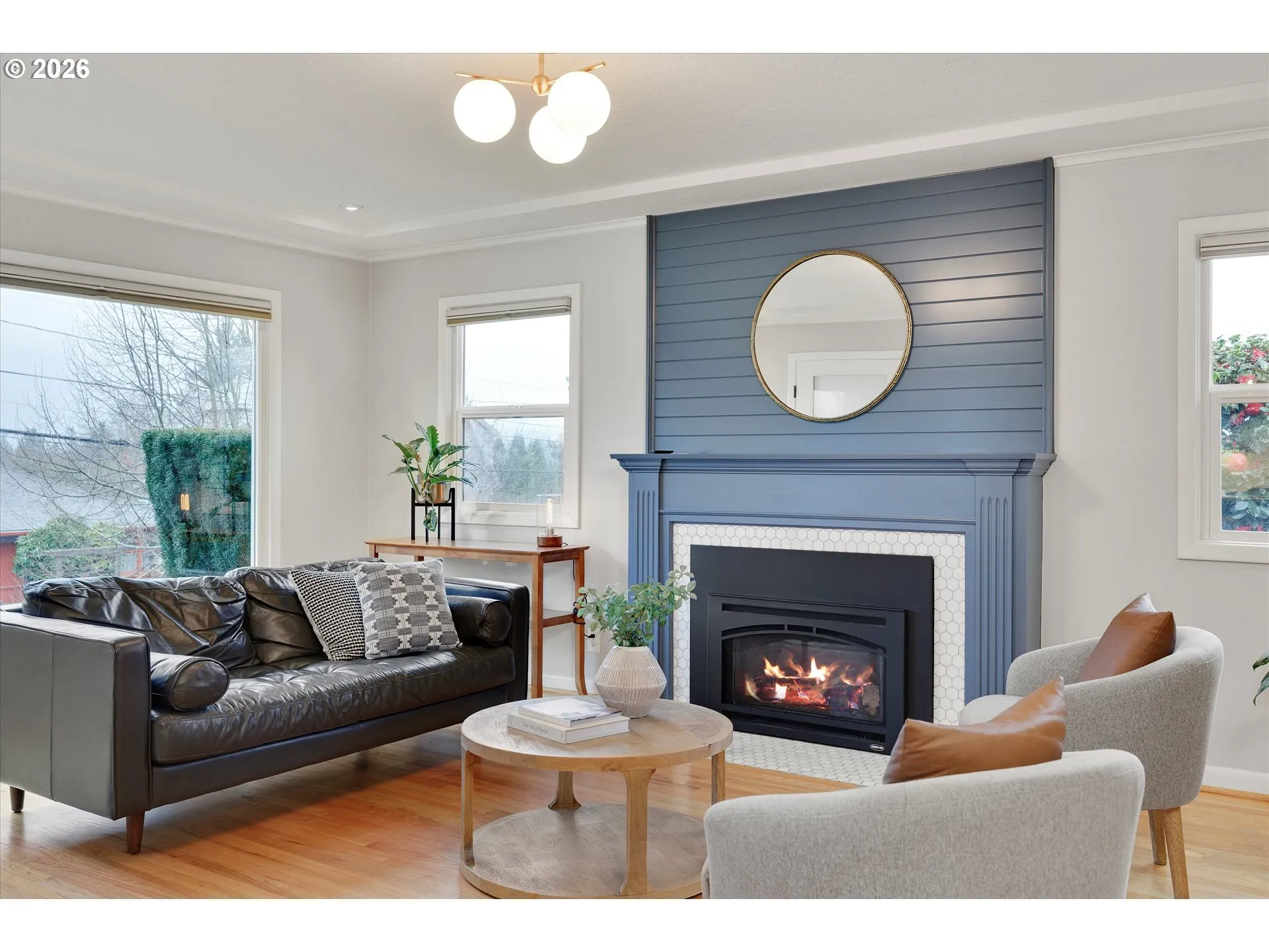 Located in coveted Eastmoreland Heights, close to Woodstock and minutes to downtown Portland. This fully renovated 1952 Mid-Century Ranch is loaded w/ character & charm while offering thoughtful, designer-level updates throughout. Original hardwood floors, expansive picture windows and a gas fireplace anchor the light-filled living room, where the home’s elevated posture captures peaceful territorial views. The designer kitchen is a true showpiece with walnut cabinetry, quartz countertops, penny tile backsplash w/ open shelving and a gourmet Thermador gas range. The dining room boasts the same views & designer touches adding personality while honoring the home’s Mid-Century vibe. 2 out of the 4 bedrooms feature original built-ins & shelves + drawers, true to the craftsmanship of this era. The fully finished basement expands the footprint with a fourth bedroom, full bath, spacious family room w/ wood stove and oversized bonus/storage room with stained concrete floors. Set on a beautifully maintained 7,550 sq ft lot, the yard is spacious, flat, usable, and impeccably cared for & private. A large covered patio creates the perfect space for year-round entertaining. Garage workshop space and a separate shed provide additional storage plus tons of closets inside. Only 2 owners since the home was built in 1952 w/ extensive updates & upgrades the last 13 years. Upgrades: Double-pane vinyl windows, roof, furnace, hot water heater, updated plumbing & electrical, Hunter Douglas blinds, radon mitigation system, sprinkler system front & back & updated water line to the house — No detail overlooked here – delivering you a true turnkey home in one of Southeast Portland’s most desirable neighborhoods. [Home Energy Score = 3. HES Report at https://rpt.greenbuildingregistry.com/hes/OR10245440]
