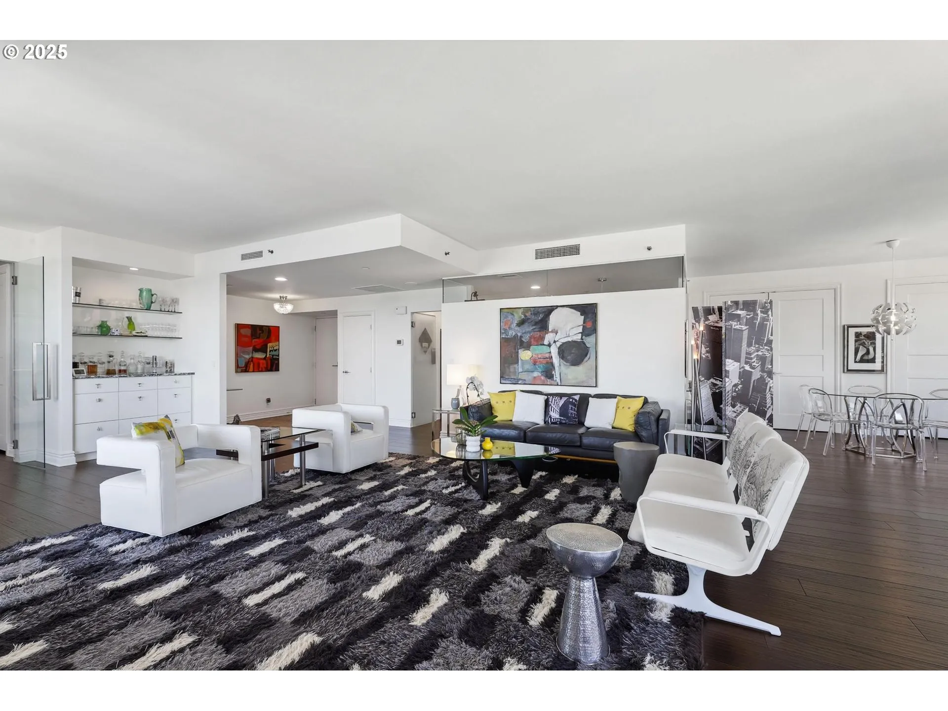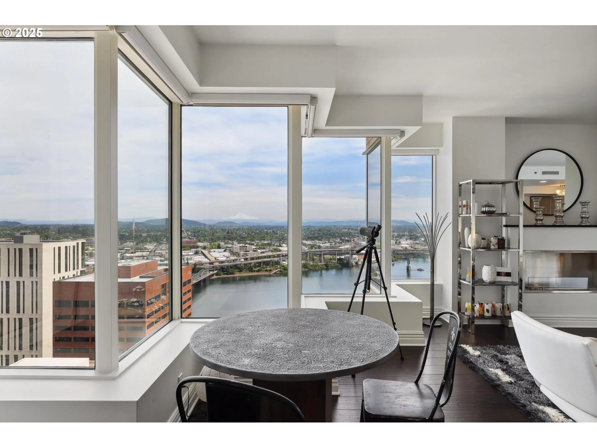 Step into classic New York sophistication where you’ll experience unparalleled luxury on the 23rd floor of KOIN Tower at Fountain Plaza. This extensively remodeled condominium boasts stunning views of the city, Mt. Hood, Mt. St. Helens, Mt. Adams, and the Willamette River. The residence features two spacious bedrooms, two full baths, and floor-to-ceiling windows that fill the space with abundant natural light. The updated chef’s kitchen is a standout, equipped with premium stainless-steel appliances, custom cabinetry, bench seating, and stylish hardwood and tile floors. The primary suite includes an expansive walk-in closet and a spa-like bathroom with a luxurious shower, while the versatile second bedroom is ideal for guests or a home office. Relax on the covered patio and immerse yourself in the vibrant yet serene environment of the arts district and revel in the luxury of a grand lobby with 24-hour concierge service. Located steps from premier shopping, dining, and entertainment, this sophisticated high-rise home offers urban living at its finest. EV charger!!! Don’t miss this rare opportunity to own a gem in Fountain Plaza. NEW EV charger!