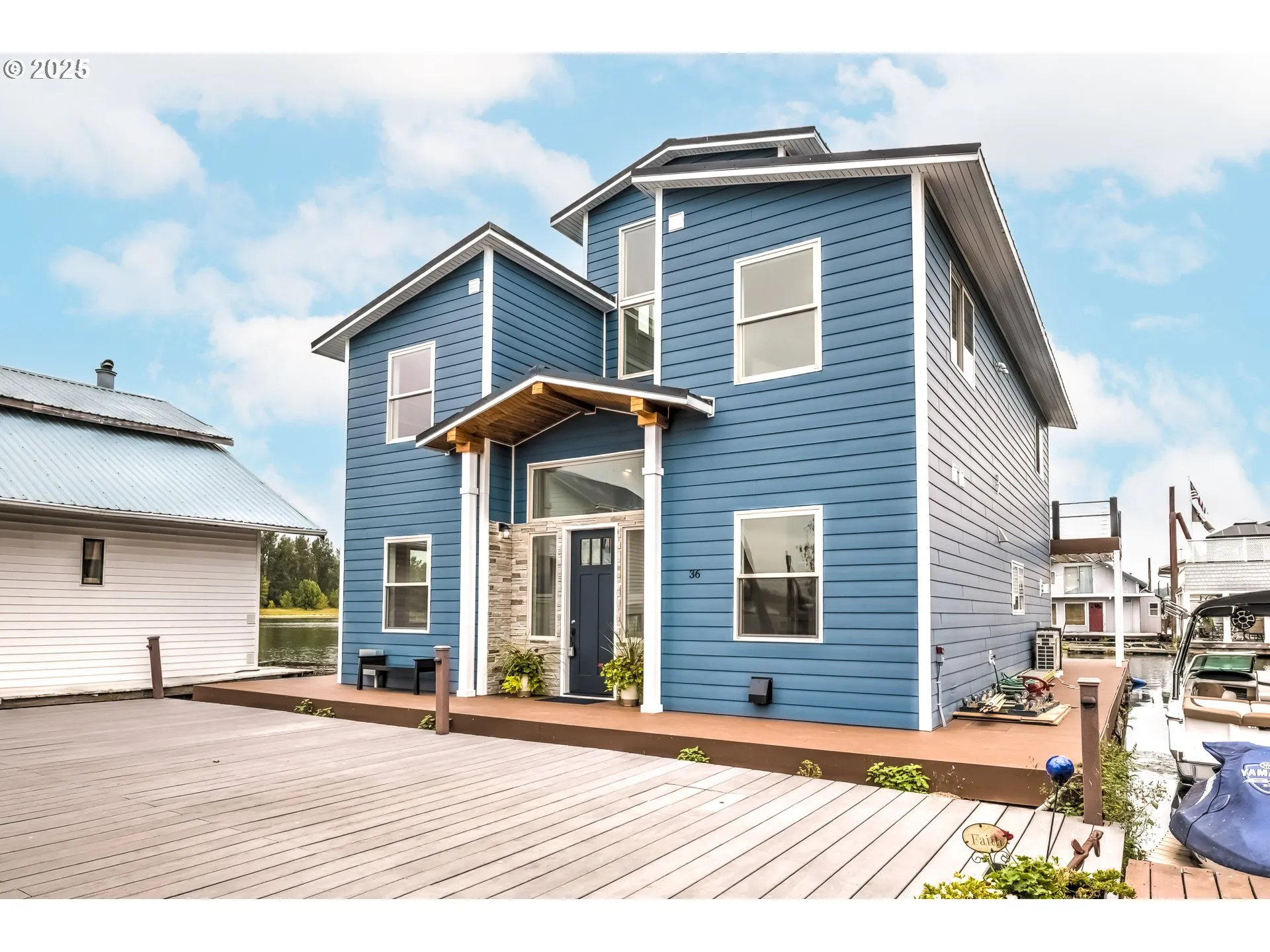Welcome to this stunning brand-new floating home, offering the perfect combination of modern comfort and serene waterfront living. Thoughtfully designed with functionality and style in mind, this home features 4 spacious bedrooms and 3 bathrooms, including a main-level bedroom and bathroom.Spanning two levels plus a light-filled cupola, the layout is open and airy, with abundant storage cleverly integrated throughout. Each level extends to private decks, ideal for entertaining or simply taking in the surrounding beauty. Positioned at the end of the slip, the home enjoys expansive views of the river—providing a sense of privacy and tranquility.With floats rated 5 and located in a peaceful moorage, this property offers the rare opportunity to embrace floating home living without compromise. Every detail has been carefully considered, making this an exceptional place to call home. You also own the slip!