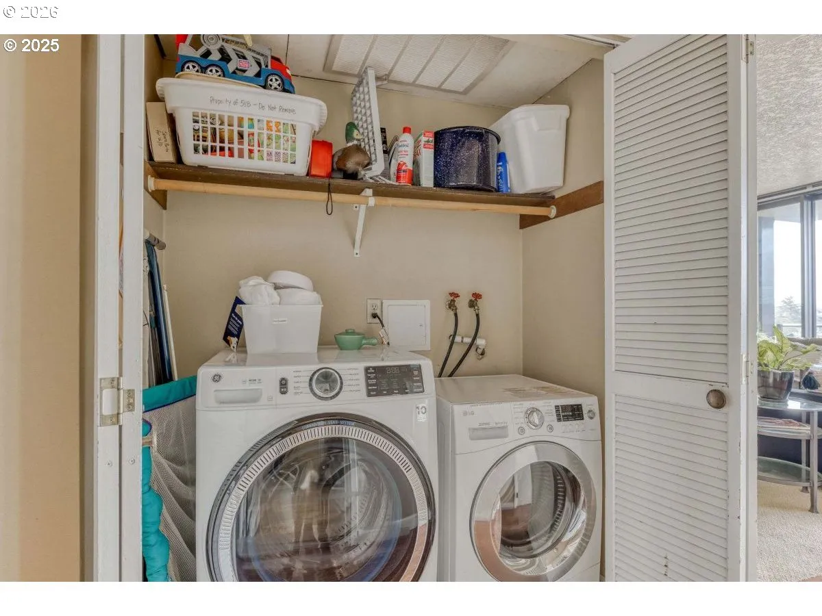 Don’t miss this rare opportunity to own a highly desirable Sand & Sea condo in the heart of Seaside! Located on the 5th floor, this nicely maintained unit features an open-concept layout with a spacious kitchen, two bedrooms, two bathrooms, an in-unit washer and dryer, and a cozy gas fireplace. Floor-to-ceiling windows fill the home with natural light, while the covered balcony showcases views of the ocean, Tillamook Head, and the surrounding mountains. Sold furnished. The Sand & Sea complex offers fantastic amenities including an indoor pool, sauna, and elevator access. Just steps from the beach and promenade, and only one block from Seaside’s vibrant downtown with shops, restaurants, & year-round events.Perfect for full-time living, a weekend retreat, or a short-term rental investment. This is a must see!!