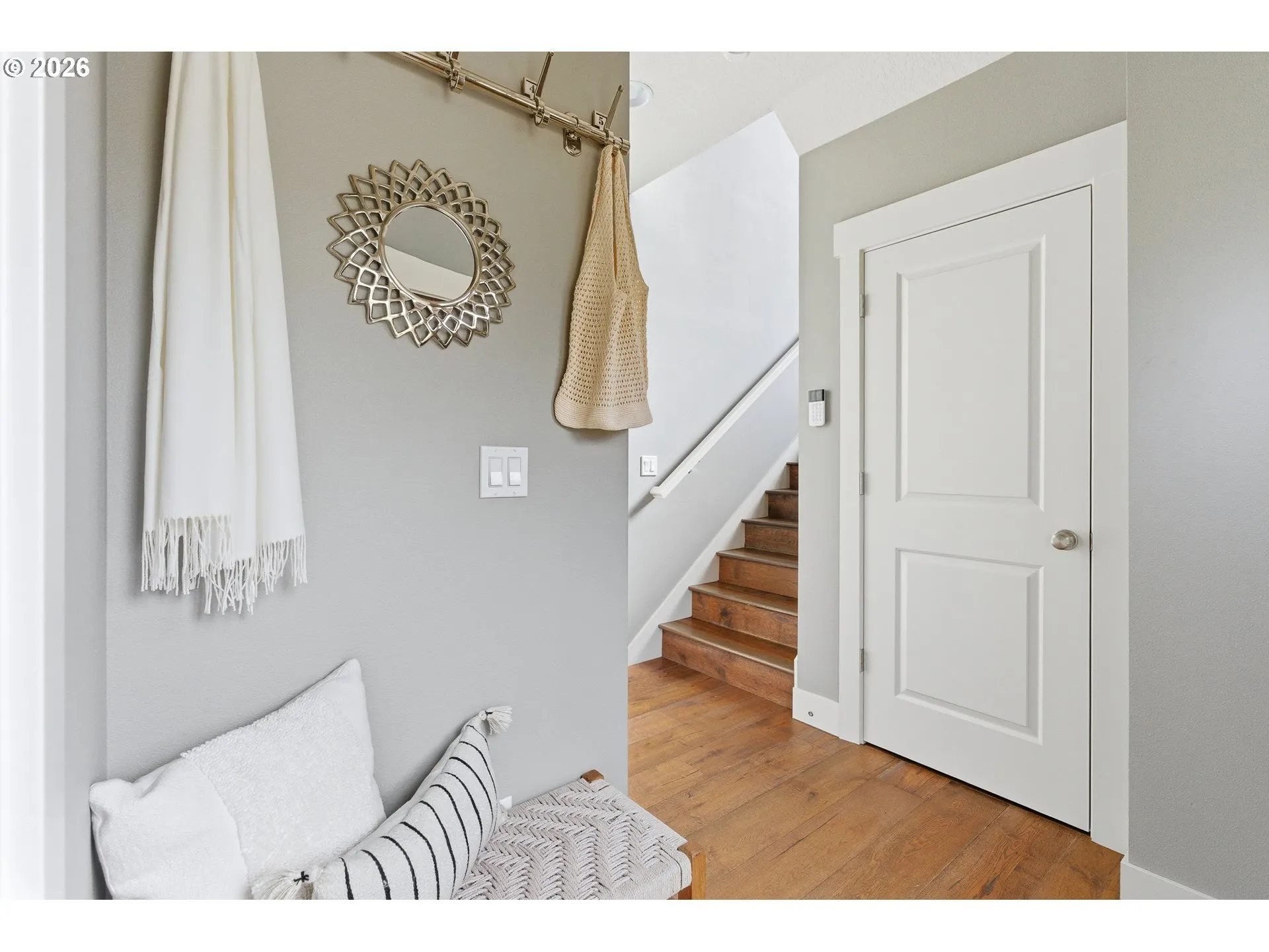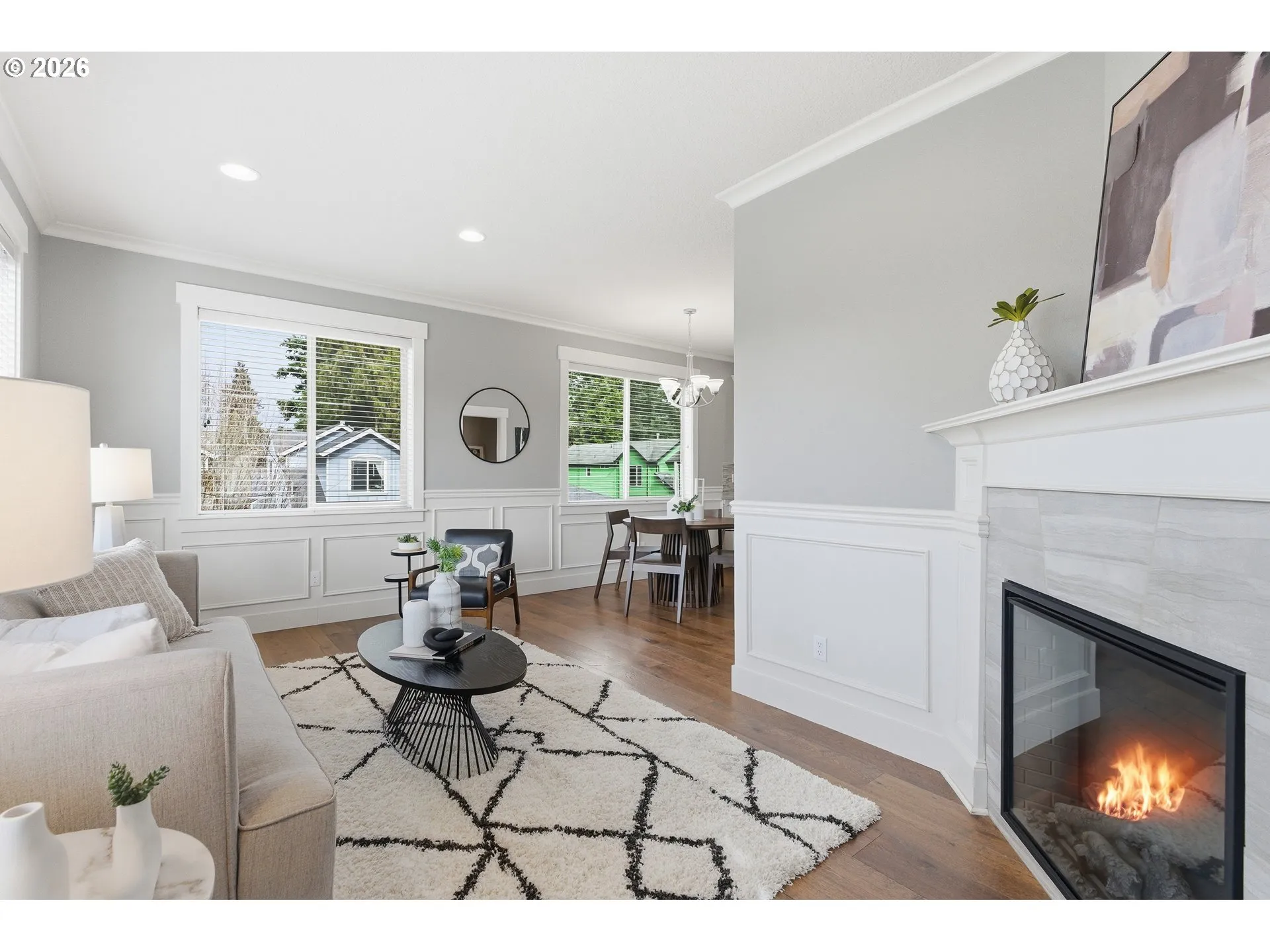 Tucked into Portland’s sought-after Kenton neighborhood, this contemporary home offers a seamless blend of comfort, functionality, and thoughtful updates. Expansive windows fill the interior with natural light, illuminating open living spaces anchored by rich engineered hardwood floors and a cozy fireplace. The well-appointed kitchen features sleek quartz countertops, stainless steel appliances, and a central eat bar, flowing effortlessly into the dining and gathering areas. A main-level primary suite creates a private retreat with an ensuite bath and double vanity, while upstairs offers a second primary option along with two additional bedrooms. The flexible lower level provides space for a home office, gym, or guest quarters. Outdoors, the seller has created a pollinator-friendly landscape enhanced by drip irrigation and soft garden lighting, turning the yard into a peaceful seasonal sanctuary. The fenced backyard and covered patio invite year-round enjoyment, while the oversized garage offers generous storage with driveway and off-street parking. Combining modern comfort with natural charm, this home is just blocks from Kenton Park and moments from Denver Avenue’s shops, restaurants, and cafés—an exceptional opportunity in one of Portland’s most vibrant and connected neighborhoods. [Home Energy Score = 6. HES Report at https://rpt.greenbuildingregistry.com/hes/OR10199363]