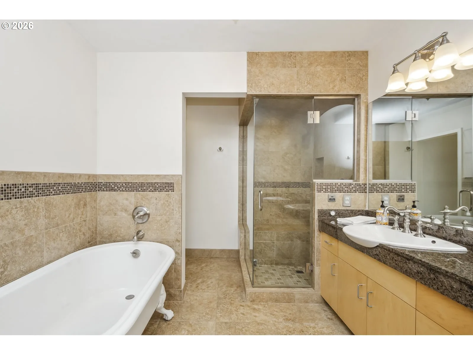 Top floor Riverstone condo 609 with a courtyard view, right in the middle of Pearl District life, with parks, the streetcar, galleries, coffee, and some of Portland’s best restaurants right outside your door. Large remodeled kitchen with top of the line professional grade appliances, range hood vented to exterior, granite counter tops, cherry cabinets, and designer tile. Great floor plan with a cozy gas fireplace in the main living area, newer hardwoods, and a balcony. Primary suite with walk in closet and an updated oversized bath featuring a steam shower and soaking tub. Flexible second space with a Murphy bed and swing mount TV, perfect for guests, office, or bonus room. Two deeded parking spaces and a storage unit, all for an incredible price.