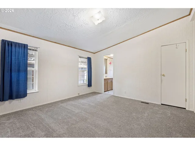 The home has updating: new (2026)carpet in living room, hallway, and bedrooms, plus newer (2022) vinyl plank flooring in the kitchen, bathrooms, entry and utility room. Forced air and air conditioning! Wooden shed is 8 x 12, carport has a workshop approx. 8 x 10. Washer and dryer, refrigerator included in sale. 55+ park, subject to buyer approval. Home site lot rent is $695 per month and includes the following: Trash pickup, Water, Sewer. The residents enjoy use of the clubhouse, the community library and the green space which is surrounded by beautiful mature trees.