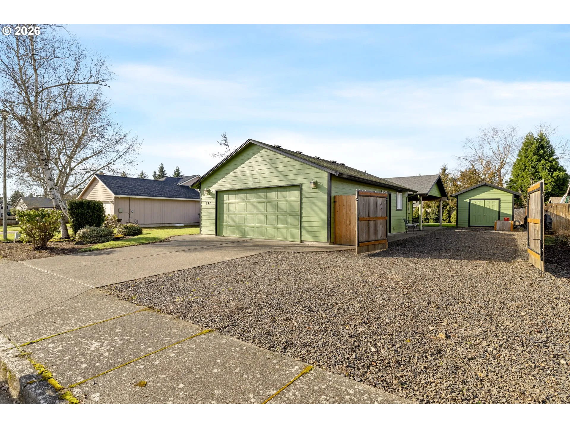 Easy living meets serious function in this well-designed single level ranch that offers the space you want and the flexibility you need. From the moment you step inside, vaulted ceilings create an airy, open feel across the great room, dining area, and kitchen. The layout is both practical and comfortable, with three bedrooms and two bathrooms, plus a spacious laundry room complete with a utility sink and extra storage space. Outside is where this property really shines. Gated RV parking gives you room for toys, trailers, or extra vehicles, while the large outbuilding with electricity opens the door to endless possibilities. Use it for storage, a workshop, hobby space, or the project area you have always wanted but never had room for. A wonderful covered patio extends your living space outdoors, perfect for morning coffee, evening gatherings, and enjoying the fresh air year round. Comfortable, functional, and incredibly versatile, this property is ready to adapt to the way you live. Schedule a showing today!