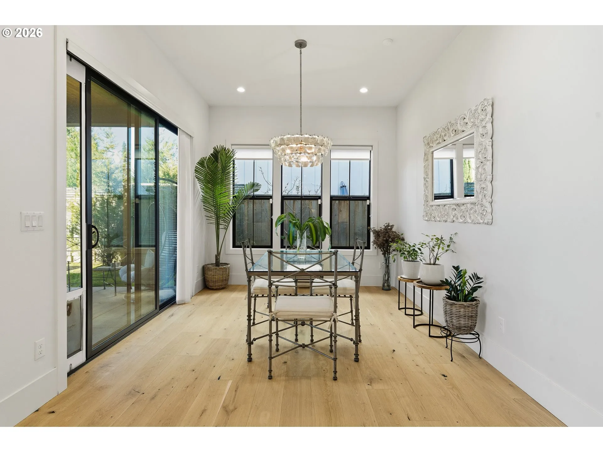 Set in the coveted West Haven neighborhood of Southwest Portland, this beautifully crafted two-story custom home pairs a striking, modern exterior with bright, Scandinavian-inspired interiors. A covered entry welcomes you into a thoughtfully designed main level featuring a flexible bedroom and nearby full bath, a private office with custom built-ins, and a sun-filled living room with vaulted ceilings, fireplace, and walls of windows framing the landscaped backyard. The chef’s kitchen is both stylish and functional, offering stainless steel appliances, a generous island, and a mudroom with ample pantry storage. Upstairs, the vaulted primary suite feels like a retreat, complete with a spa-inspired bath featuring a soaking tub, glass shower, heated floors, double vanity, and walk-in closet. Two additional bedrooms and a full bath complete the upper level. With a fenced yard, two-car garage, and refined finishes throughout, this home delivers effortless comfort with modern elegance.
