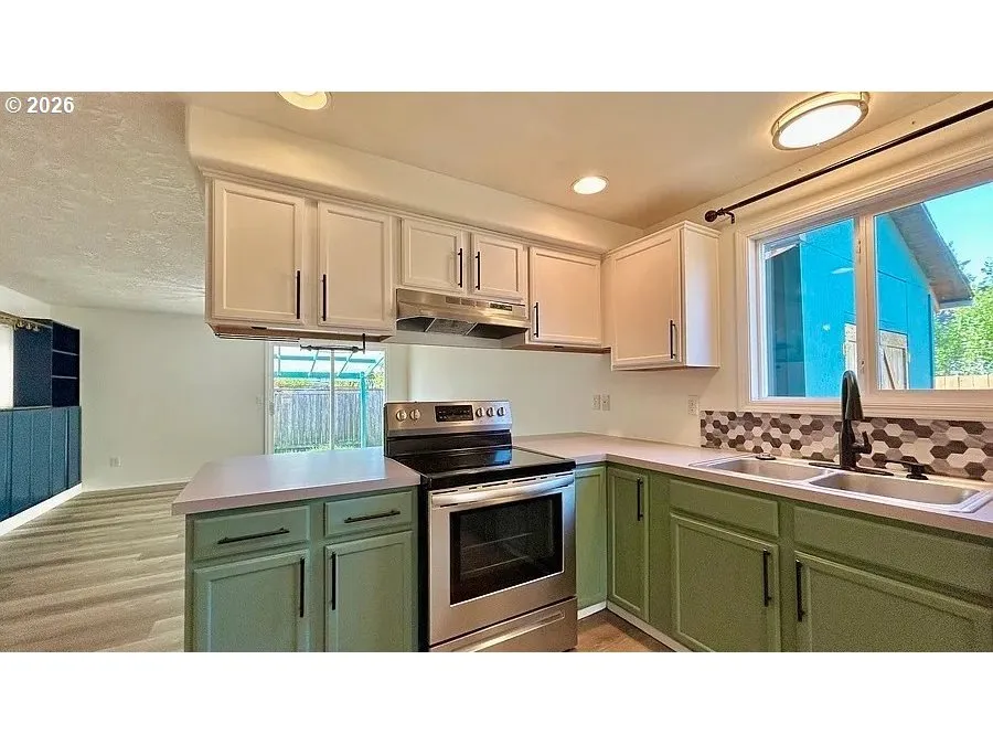 Single-level living with comfort and convenience! This home features a spacious living room filled with natural light from a beautiful bay window, creating a warm and inviting atmosphere. The kitchen offers an eat bar for casual dining and easy entertaining, with plenty of workspace and storage. The primary suite is complete with its own private bathroom and walk-in shower. Step outside to enjoy the fenced backyard and covered patio — perfect for year-round outdoor gatherings, gardening, or quiet mornings with coffee. For peace of mind, enjoy the newer roof and furnace. A wonderful opportunity for easy, single-level living!