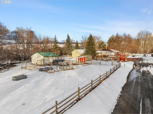Serene country retreat on 1.1 acres in Union, OR! This immaculate one-level ranch home delivers 1,630 sq ft of easy living with 3 bedrooms, 2 baths, and an open layout. The spacious master suite is a true highlight: retreat to its beautiful, spacious bathroom—perfect for unwinding—and generous walk-in closet for effortless organization. Engineered hardwood floors flow throughout, reflecting abundant natural light that pours in through vinyl-framed windows, a cozy wood stove anchors the living room, central air keeps things comfortable, and the kitchen shines with a gas range, dishwasher, range hood, microwave, and a beautiful stone sink for elegant functionality with a built-in disposal. An oversized laundry room adds everyday convenience with huge pantry storage—perfect for supplies, folding, or extra organization! Step outside to your own peaceful paradise on a quiet corner lot in a cul-de-sac: the backyard view is stunning, with lush, mature trees lining a charming creek that meanders through the property—offering the soothing sound of babbling water, dappled shade, and a tranquil, nature-immersed backdrop right at home. Six raised garden beds ready for your touch, poultry coop for fresh eggs, large horse barn, an attached 3-car garage, and a dedicated 2-bay RV carport for your motorhome, trailer, or extra vehicles! All appliances stay: refrigerator, washer and dryer, plus a mower for easy acreage upkeep. Move-in ready—perfect for hobby farming or quiet country living along your private creek. Here is your blank canvas… come make it beautiful!