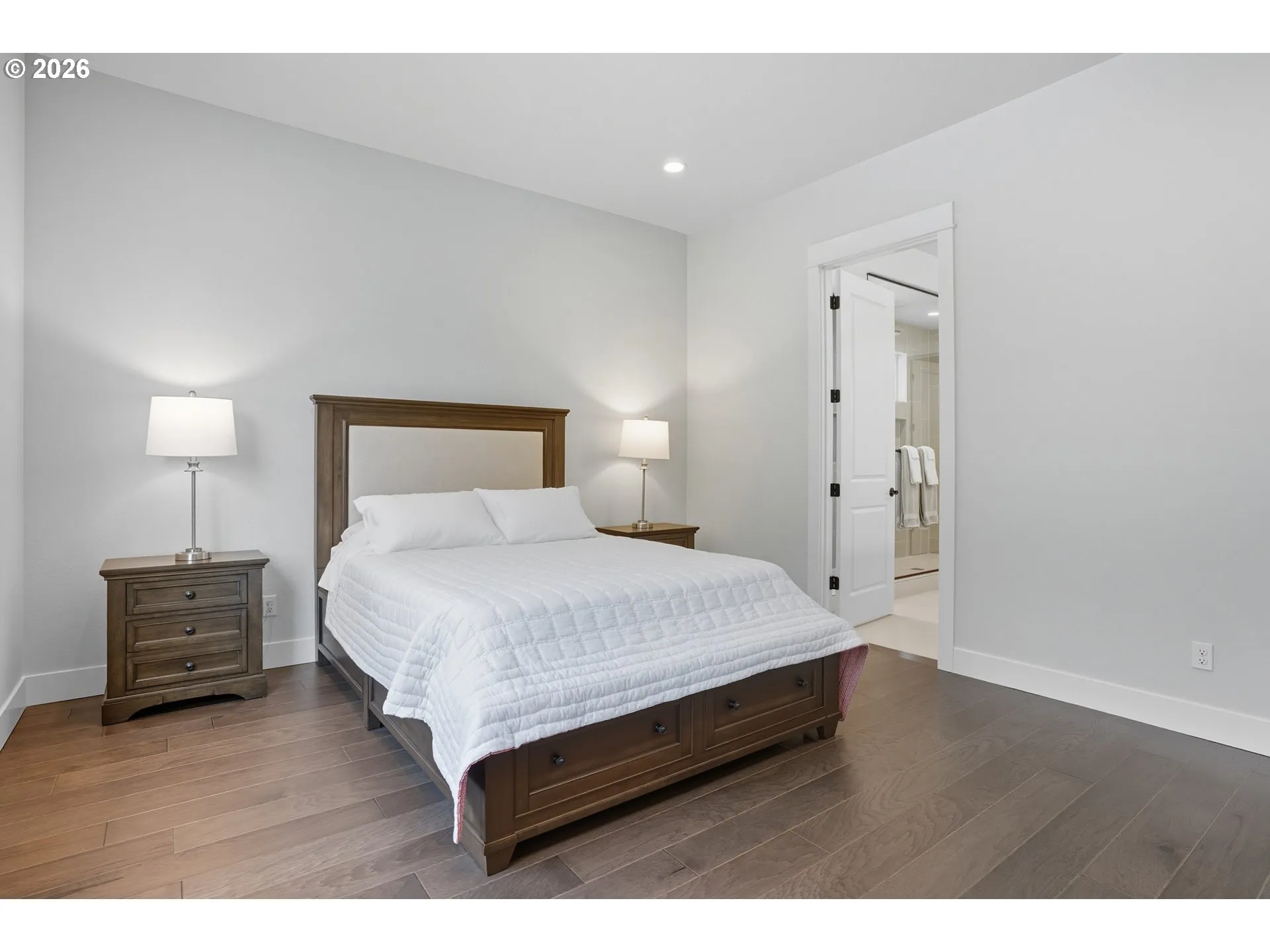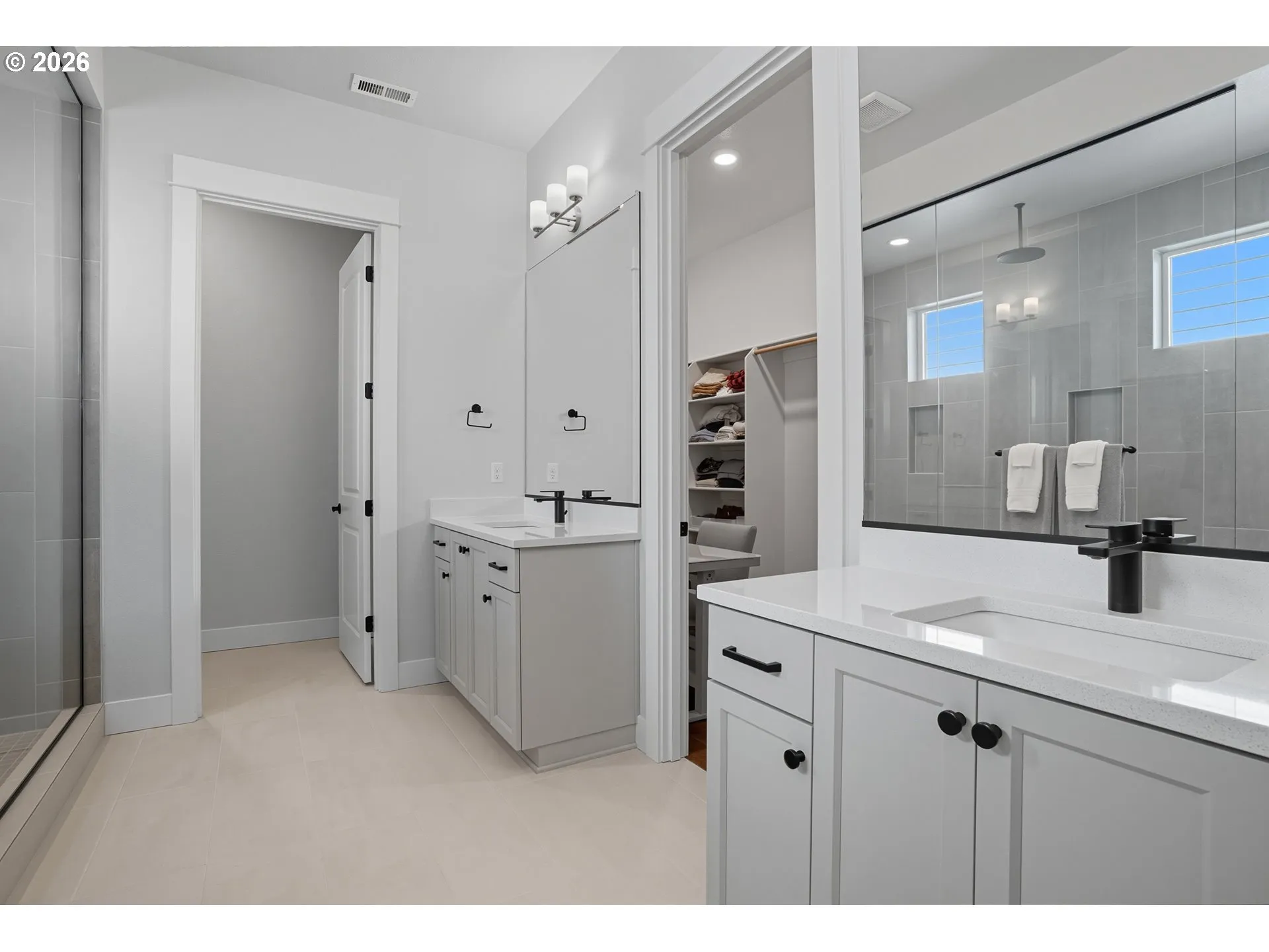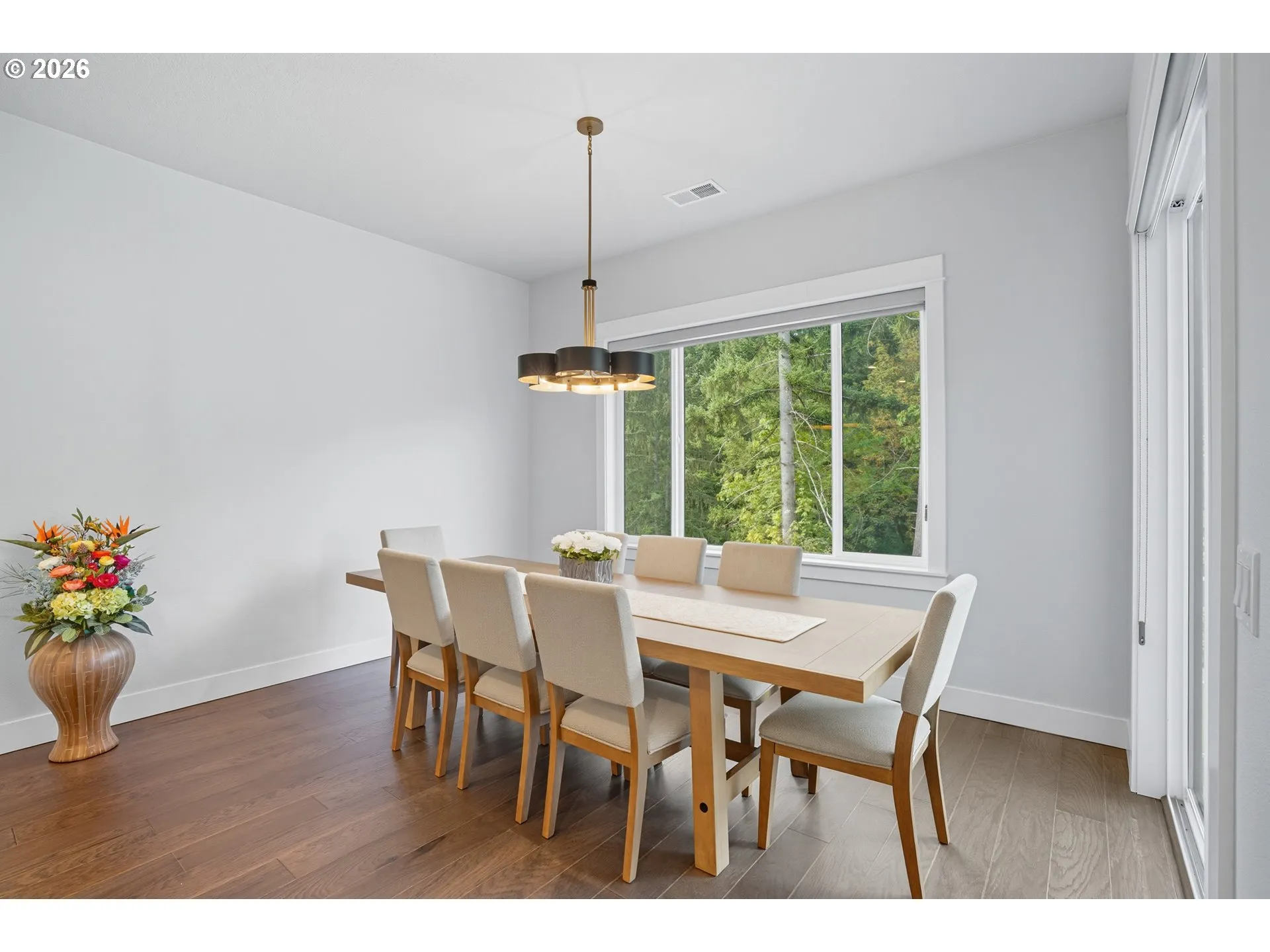Welcome to this one level home in the new Lacamas Hills neighborhood! Luxury meets functionality in this stunning modern home with upgrades inside and out. Featuring 12’ and 10’ ceilings, quartz countertops throughout, engineered hardwood flooring, cabinetry, lighting, and fixtures, every detail has been elevated. The chef’s kitchen includes a sleek built in refrigerator, oversized island, stainless appliances, and full-height cabinetry, opening to a bright living area with floor-to-ceiling sliding doors and views of the private greenbelt. Retreat to the spacious primary suite with a walk-in closet and spa-like bathroom. Three full baths are beautifully finished, and the dedicated dining space overlooks forest views. Outdoor upgrades include a low maintenance turf yard, sprinklers front and back, raised garden beds, gas BBQ hookup, and a covered patio for year-round enjoyment. The 3-car garage provides ample storage space. All just minutes from Lacamas Lake, top-rated schools, shopping, and trails.