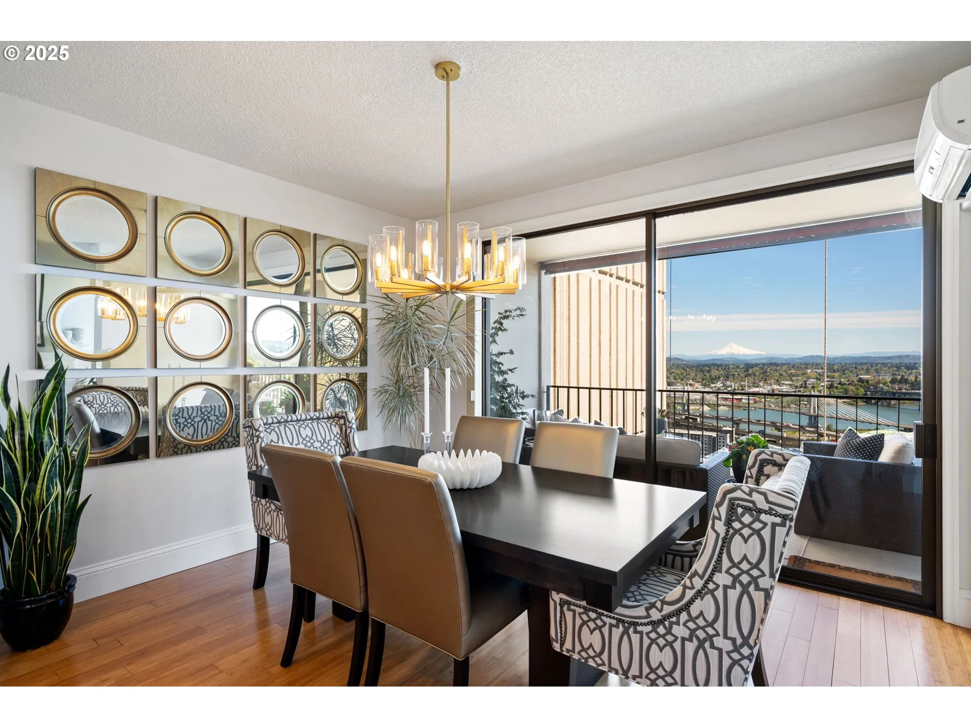 Rare fully remodeled corner residence delivers exceptional downtown value with windows on three sides—East, South, and West—filling the home with natural light throughout the day. Two deeded parking spaces in premium garage locations near the building entrance (one space with tandem flexibility for 2 compact vehicles) so essentially 3 parking spaces a rare and highly sought-after downtown convenience. Two covered view balconies showcase sweeping panoramic vistas of Mt. Hood, the Willamette River, South Waterfront, the West Hills, and Downtown Portland—creating a dramatic backdrop for everyday living and entertaining. The open, light-filled floor plan lives large and flows seamlessly between living, dining, and kitchen spaces.The fully remodeled chef’s kitchen features custom cabinetry, stainless steel appliances, quartz countertops, designer tile backsplash, and a generous island with seating and storage. The living room includes a gas fireplace and opens directly to the east-facing balcony. The primary suite is a true retreat with a second gas fireplace, marbled porcelain accent wall, west-facing balcony, and spa-inspired bath. Full-service amenities include 24-hour concierge, evening security, indoor and outdoor pools, spa, sauna, multiple fitness rooms, and 53 guest parking spaces. Ideally located near the Waterfront, PSU, MAX, Streetcar, and Downtown Cultural District. Rental cap not met. Pet friendly.