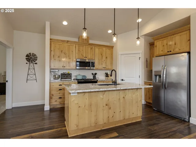 Quality-Built Corner Lot Home with RV Garage, Shop & Main-Level Primary SuiteMove-in ready and filled with natural light, this quality-built home offers an open-concept floor plan with vaulted ceilings and modern finishes throughout. The open kitchen features custom cabinetry, granite countertops, stainless steel appliances, and generous prep space—ideal for everyday living and entertaining.The main-level primary suite includes a tiled walk-in shower, dual vanities, and a large walk-in closet for comfort and convenience.Car enthusiasts, hobbyists, or RV owners will love the oversized third garage bay with RV-height clearance, drive-through pass-through doors, 220V outlet, and detached 10’ x 16’ shop—perfect for projects, storage, or workspace flexibility.Situated on a desirable corner lot less than one block from a brand-new accessible park, the private landscaped backyard includes a covered patio, gas BBQ hookup, and hot tub (included)—creating the perfect outdoor living space year-round.A rare combination of quality construction, functional design, and hard-to-find RV parking with shop space.