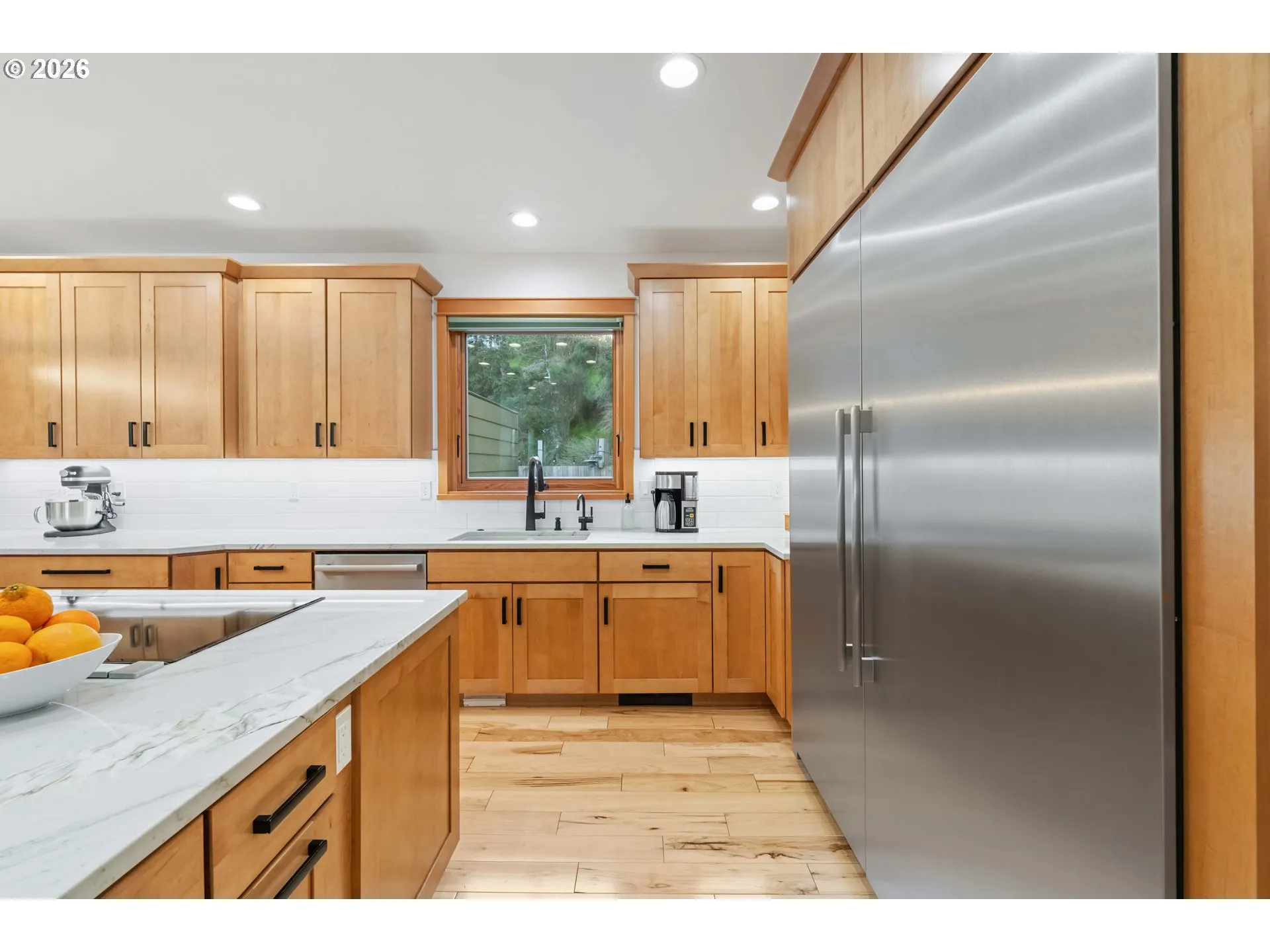 This home lives large — and it does it with intention. Set on a rare 1/3-acre lot in the heart of town, this fully remodeled 5-bedroom, 4-bath home was beautifully refreshed in 2021/2022 with quality, comfort, and everyday function in mind. The result? A property that feels custom, cohesive, and completely move-in ready. The main level is bright and welcoming, anchored by a kitchen designed for real life and real entertaining. Induction cooktop, double ovens, a generous island, walk-in pantry, wet bar, breakfast bar seating, and beautifully crafted cabinetry create a space that performs as well as it presents. Hickory flooring adds warmth throughout, and natural light fills every corner. A main-level bedroom and full bath offer flexibility for guests or multi-generational living. Upstairs, the primary suite delivers a true retreat — walk-through closet, spa-inspired ensuite, heated tile floors, and a walk-in tile shower. Two additional bedrooms share a well-designed Jack-and-Jill bath, balancing privacy and practicality. The lower level expands the possibilities even further, featuring a fifth bedroom, full bathroom, home gym, media room, and a functional mudroom — ideal for busy households, hobbies, or hosting extended stays. Outside, the property stretches out in all the right ways. Expansive decking, a patio with outdoor fireplace, hot tub, and a sprawling yard collectively create an entertainer’s backdrop that’s hard to find. The triple attached garage completes the package with ample space for vehicles, storage, and toys. Located just minutes from shopping, dining, and schools, eight minutes to Bay Area Hospital, a few blocks from the Coast Guard station, and a short drive to the beaches and trails of the stunning Oregon Coast — this is space, style, and coastal convenience wrapped into one exceptional home – don’t miss it! A must see!