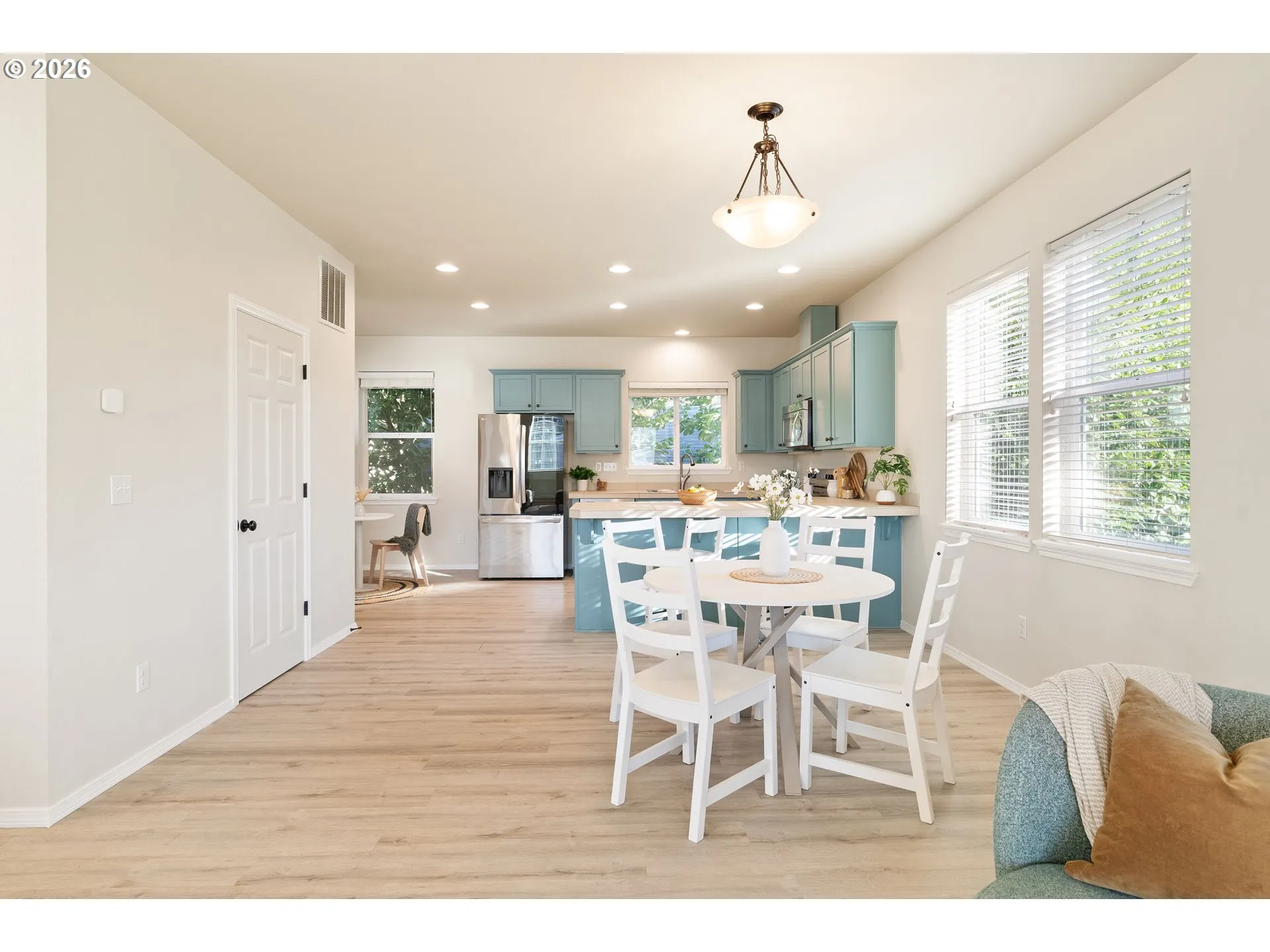 Experience the convenience of living just blocks from the heart of Multnomah Village, where you’ll find a lively mix of food carts, restaurants, bars, coffee shops, the public library, local boutiques, and Portland’s oldest toy store. Quick access to I-5—less than two minutes away—makes commuting simple and efficient. This three-level, three-bedroom, two-and-a-half-bath home offers the ease of low-maintenance living with no HOA and minimal exterior upkeep. While there is no traditional backyard, a green space out front provides a pleasant outdoor setting. The home is also walkable to nearby parks, offering access to trails, open lawn areas, and a variety of outdoor amenities. The main level features luxury vinyl flooring throughout the living room and kitchen, an upgraded smart refrigerator, and a comfortable breakfast nook. Upstairs, the spacious primary suite includes a walk-in closet and double-vanity bath, with two additional bedrooms offering flexibility for a variety of needs. The oversized tandem garage accommodates two vehicles with potential room for a third small car and provides generous storage. In addition to the garage, there is ample off-street parking—an added convenience in this desirable location. Central air conditioning ensures year-round comfort. A rare opportunity to enjoy low-maintenance living in a vibrant Southwest Portland location.