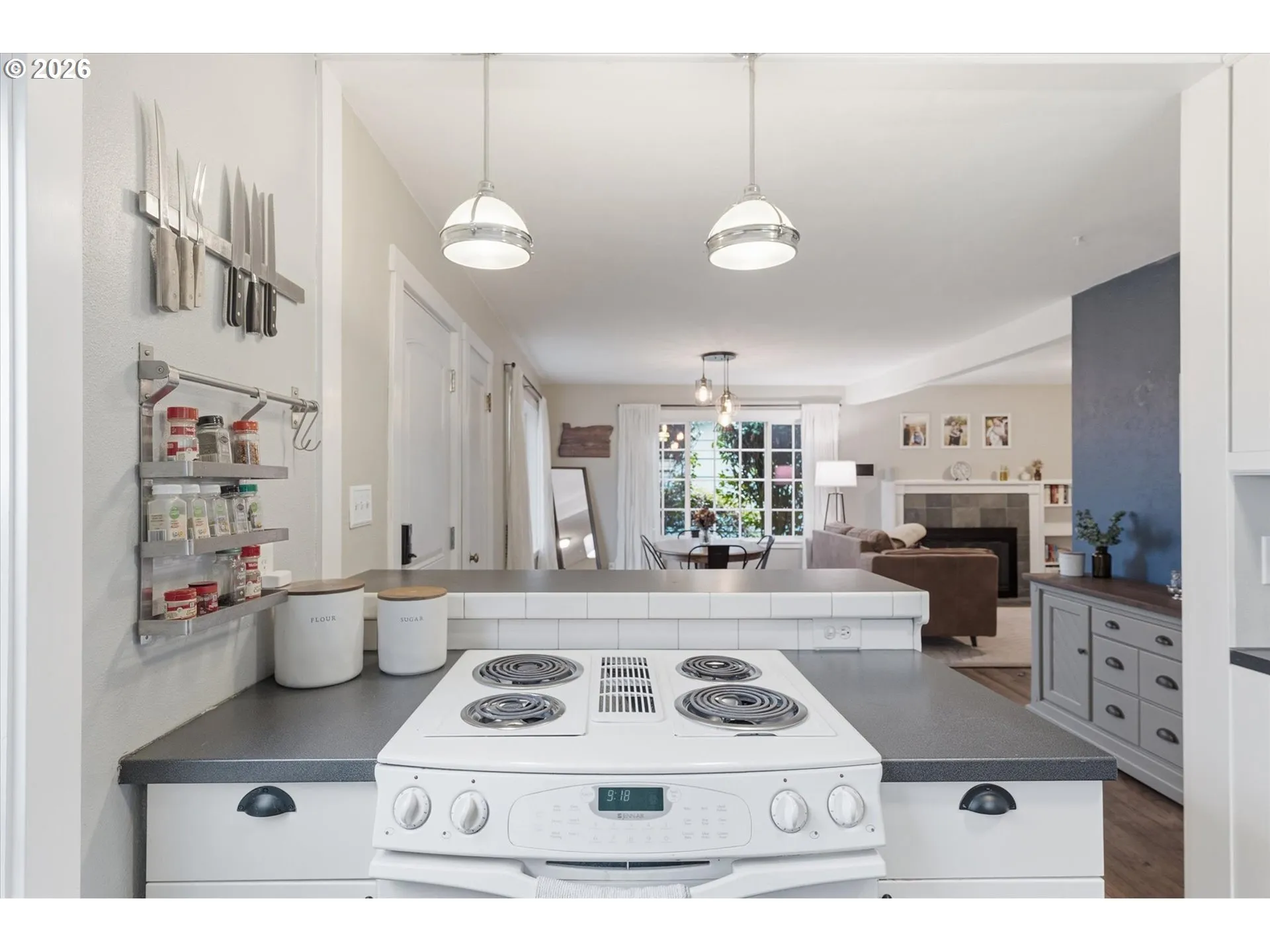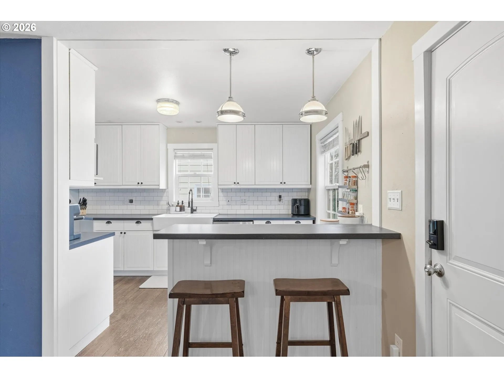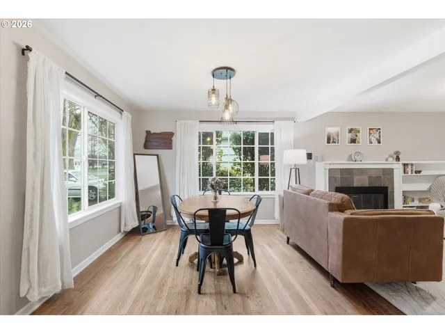 Storybook home with timeless charm and thoughtful modern updates! This 2-bedroom, 1.75-bath home features hardwood floors and a cozy wood-burning fireplace with classic built-in shelving. The kitchen boasts Craftsman-style cabinets, a farmhouse sink, new dishwasher, and a stove with downdraft, perfectly combining style and function. The primary bedroom includes a newly added ensuite bathroom and walk-in closet. French doors open to a bright bonus room with vaulted ceilings and large windows overlooking the meticulously landscaped backyard, creating a peaceful, light-filled retreat. Upstairs offers the second bedroom plus a versatile flex space ideal for a nursery, reading nook, or home office. A ductless mini-split system provides efficient heating and cooling for year-round comfort. Enjoy the outdoors in a beautifully landscaped backyard featuring garden beds, a greenhouse, gazebo, and an inviting stone paver patio—ideal for entertaining or relaxing. Established fig tree and blueberry bushes, along with rose bushes, lilac, jasmine, and peonies, create a vibrant, garden-like setting. The finished detached garage—complete with a built-in sound system and a soon-to-be-installed new garage door offers great potential for a workout room, office, or additional storage. Ideally located just blocks from the lake, this home perfectly blends charm, comfort, and outdoor living. You don’t want to miss this one!!
