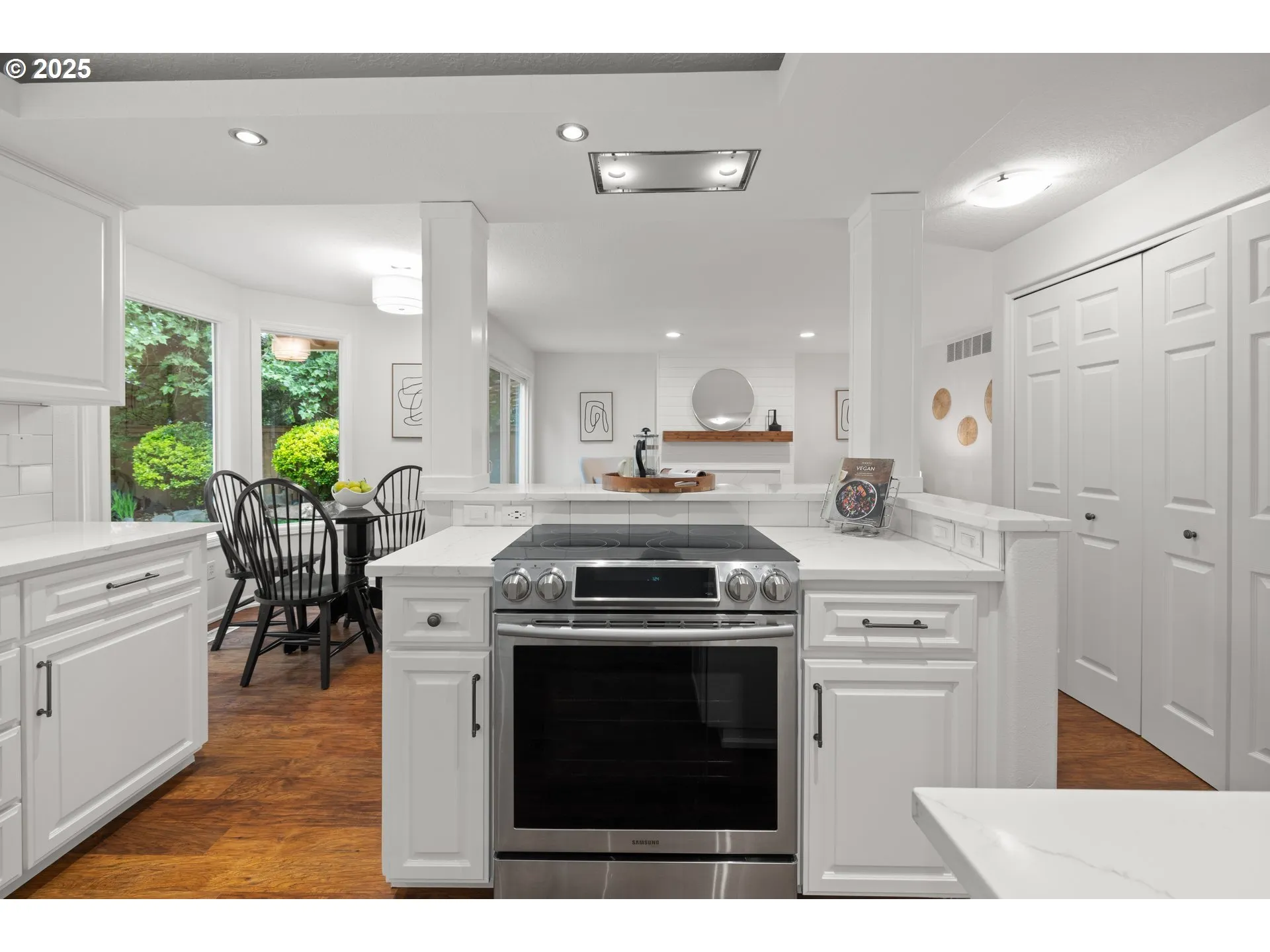 Nestled on a private cul-de-sac in the sought-after Surrey Pines neighborhood, this refreshed and updated two-story traditional-style home offers exceptional value and comfort. Recently remodeled with stylish new flooring, fresh interior paint, and an upgraded kitchen, the home also features a revitalized family room complete with a new hearth and custom fireplace surround. Major systems have been modernized, including a newer roof, furnace, A/C, high-efficiency on-demand water heater, and high quality Milgard windows. The versatile 3-bedroom, 2.5-bath layout includes formal living and dining rooms with vaulted ceilings and large windows, while the open-concept kitchen flows seamlessly into a cozy family room and charming breakfast nook that overlooks the private and serene backyard. Upstairs, you’ll find all three bedrooms, including a large primary suite with a distinctive marble-tiled bathroom. Additional highlights include a main-level laundry closet, two-car attached garage, and a large storage/tool shed. The fully fenced backyard is a highlight, featuring a spacious lawn, room for gardening, and a large deck—perfect for entertaining and summer BBQs. Located in a premier spot along Oregon’s High Tech Corridor—just minutes from Nike, Intel, and top-rated schools—this home is also within walking distance of three city parks, including the Tualatin Hills Sports Complex and Aquatic Center. It’s just a short drive to many popular stores, restaurants, and shopping centers, offering both convenience and a strong sense of community in one perfect package.