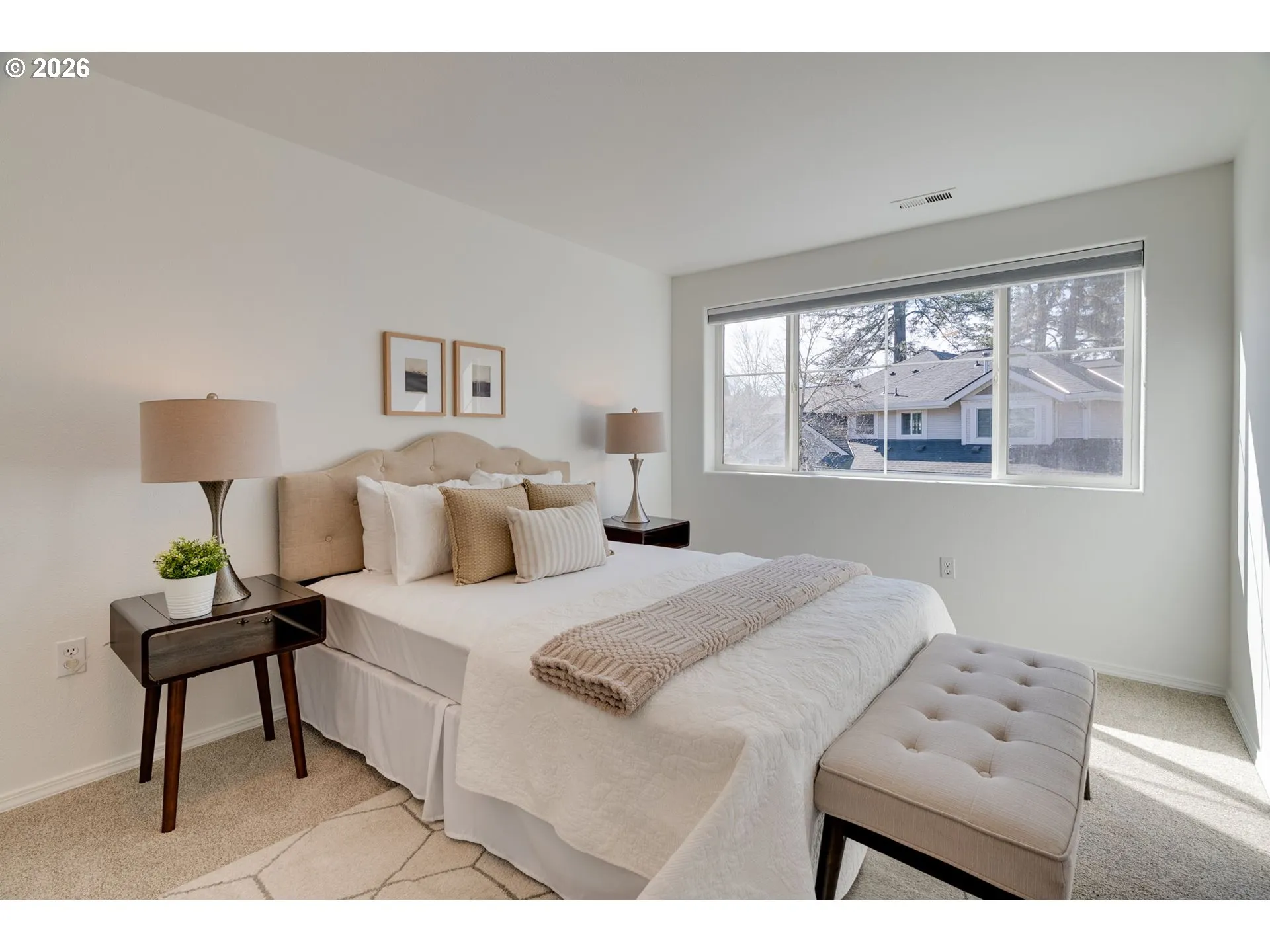 Tucked beside Tualatin Hills Nature Park, this stunning townhome lives like a private treehouse, surrounded by greenery, backing to peaceful wetlands, and perfectly positioned in one of Beaverton’s most convenient locations. The interior blends modern comfort, thoughtful design, and functionality within a beautifully curated floor plan. A covered entry welcomes you into a dramatic, light-filled living room with soaring ceilings, expansive windows, and a cozy gas fireplace, all oriented toward a wall of trees that blurs the line between indoors and out. The open-concept main level flows effortlessly from living to dining to kitchen, with a charming open den tucked along the way. The spacious kitchen offers generous counter space, ample cabinetry, new stainless-steel appliances, and a peninsula for gathering, designed for both everyday ease and effortless entertaining. A convenient half bath with laundry, built-in storage, and direct access to the two-car garage completes the main level. Upstairs, the primary suite features a wall of windows and truly feels like a retreat in the trees, complete with a walk-in closet and an en-suite bath with double vanities, a soaking tub, and a separate walk-in shower. Two additional bedrooms and a full hallway bath offer flexible living options, ideal for guests, a dedicated home office, creative studio, fitness space, or whatever life calls for. Step outside to your private deck and soak in tranquil views of mature trees, and the sound of birds, set in a peaceful backdrop that makes this home feel worlds away from it all. Recent updates include new luxury vinyl flooring, new carpet, fresh interior paint, and new appliances. Perfectly positioned within the vibrant Tualatin Valley corridor, this home offers convenient access to Nike, Intel, MAX light rail, downtown Beaverton, and an abundance of nearby shopping and dining.