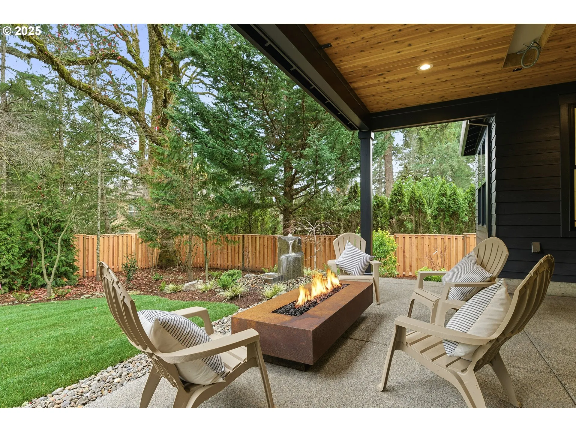 Exceptional Design Meets Prime Location – New BP Homes luxury home in Forest Highlands. This stunning NW Contemporary home blends a moody, modern palette with elevated craftsmanship in one of Lake Oswego’s most coveted neighborhoods. Featuring 5 bedrooms, 5 baths—including two ensuite bedrooms—and expansive vaulted spaces throughout, this home offers luxury at every turn. The great room impresses with 10.5–11’ ceilings, exposed beams, slat wall accents, custom cabinetry, and a striking slab porcelain fireplace. The chef’s kitchen includes a pot filler, farmhouse sink, chilled water purifier, Monogram appliance package with 48” dual-fuel range and refrigerator, and a spacious scullery (back kitchen) plus walk-in pantry with barn door access. The main-level primary suite boasts engineered hardwood, a spa-style bath with heated floors, walk-in shower with 3-piece spray, heated towel bar, taupe soaking tub, lighted mirrors, and full-height tile finishes. Additional highlights include an upstairs laundry with tile bench, multi-panel slider to covered back deck, metal/composition roof with rich hickory-stained cedar accents, and oversized 3-car tandem garage. Minutes to downtown Lake Oswego, the Country Club, and top-rated Lake Oswego schools.