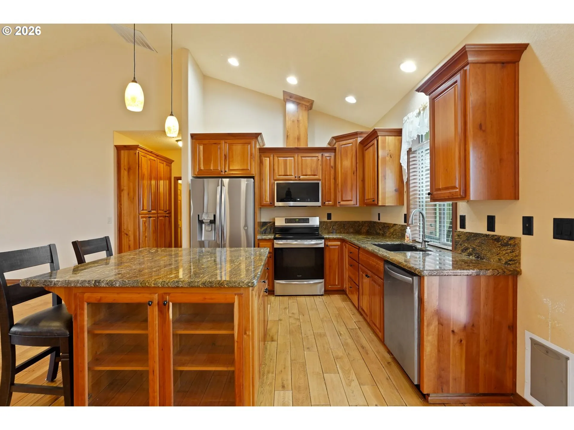 Welcome to this meticulously crafted 2010 custom home situated on the last lot of the street and showcases quality craftsmanship and thoughtful upgrades throughout.The heart of the home features a beautiful kitchen equipped with premium solid cabinetry, convenient pull-out shelving, and a convection oven for the culinary enthusiast. Beautiful hardwood floors flow seamlessly through the main living areas, while the bedrooms offer the comfort of new carpeting.Throughout the home, you’ll appreciate the attention to detail with solid doors and closet doors that speak to the quality construction. The property sits on a fully fenced lot with an automated sprinkler system for easy maintenance.Outdoor living is enhanced by raised garden beds perfect for the home gardener, plus an RV pad complete with 30-amp electrical hookups and waste disposal connections—ideal for extended family visits or your own adventures.The peaceful location provides added privacy and reduced traffic while maintaining convenient access to neighborhood amenities.This home combines modern conveniences with quality finishes, creating a move-in ready opportunity for discerning buyers.