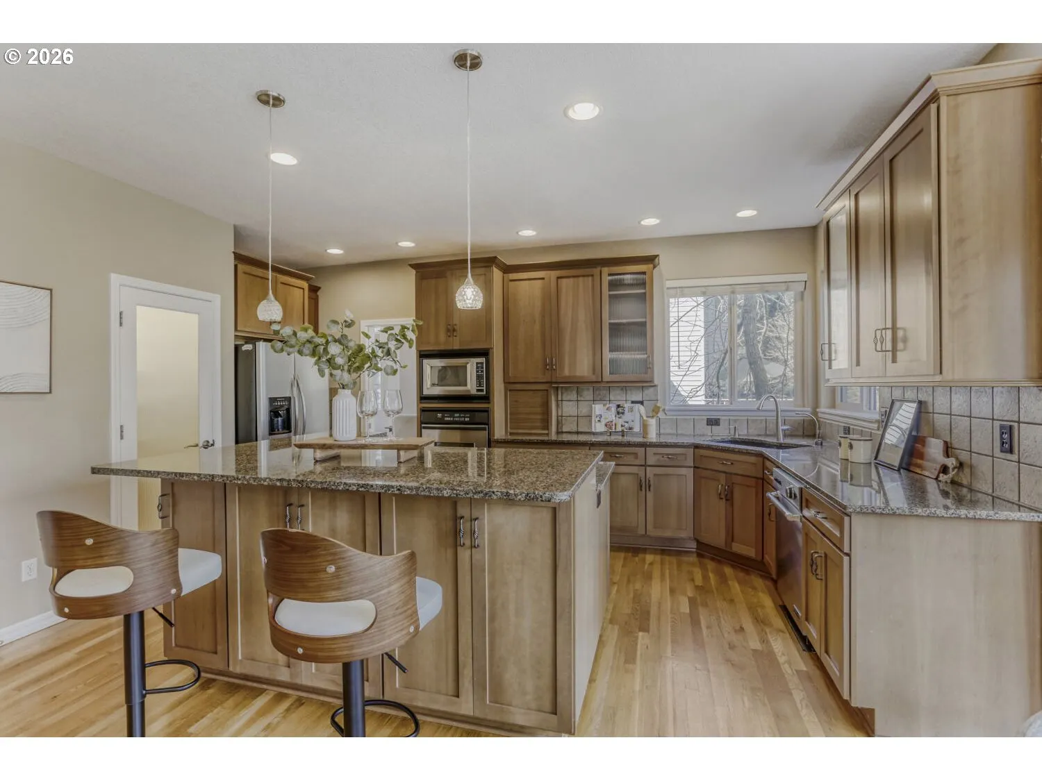Welcome home to your private Bull Mountain retreat with stunning views! This spacious, light-filled 5-bedroom home has been beautifully remodeled throughout, featuring updated hardwood floors and a thoughtfully designed layout.A grand entry with high ceilings leads to formal living and dining rooms, creating an ideal setting for both everyday living and entertaining. The kitchen features cherry cabinets, slab granite countertops, stainless steel appliances, a Silgranit sink, and instant hot water, all opening to a large family room with a cozy fireplace and incredible views.The main level also includes a dedicated office/den, while the upper and lower levels offer flexible living with three bedrooms upstairs and two downstairs, plus a full bath. The fabulous primary suite, huge bonus room, and additional unfinished space provide room for everyone.Enjoy outdoor living with two Trex decks—perfect for year-round enjoyment of the breathtaking scenery. The yard features a sport court and a whimsical “magical forest” area for exploration, along with ample storage throughout. A central vacuum system is included.This home truly has it all—space, storage, updates, and unbeatable views!