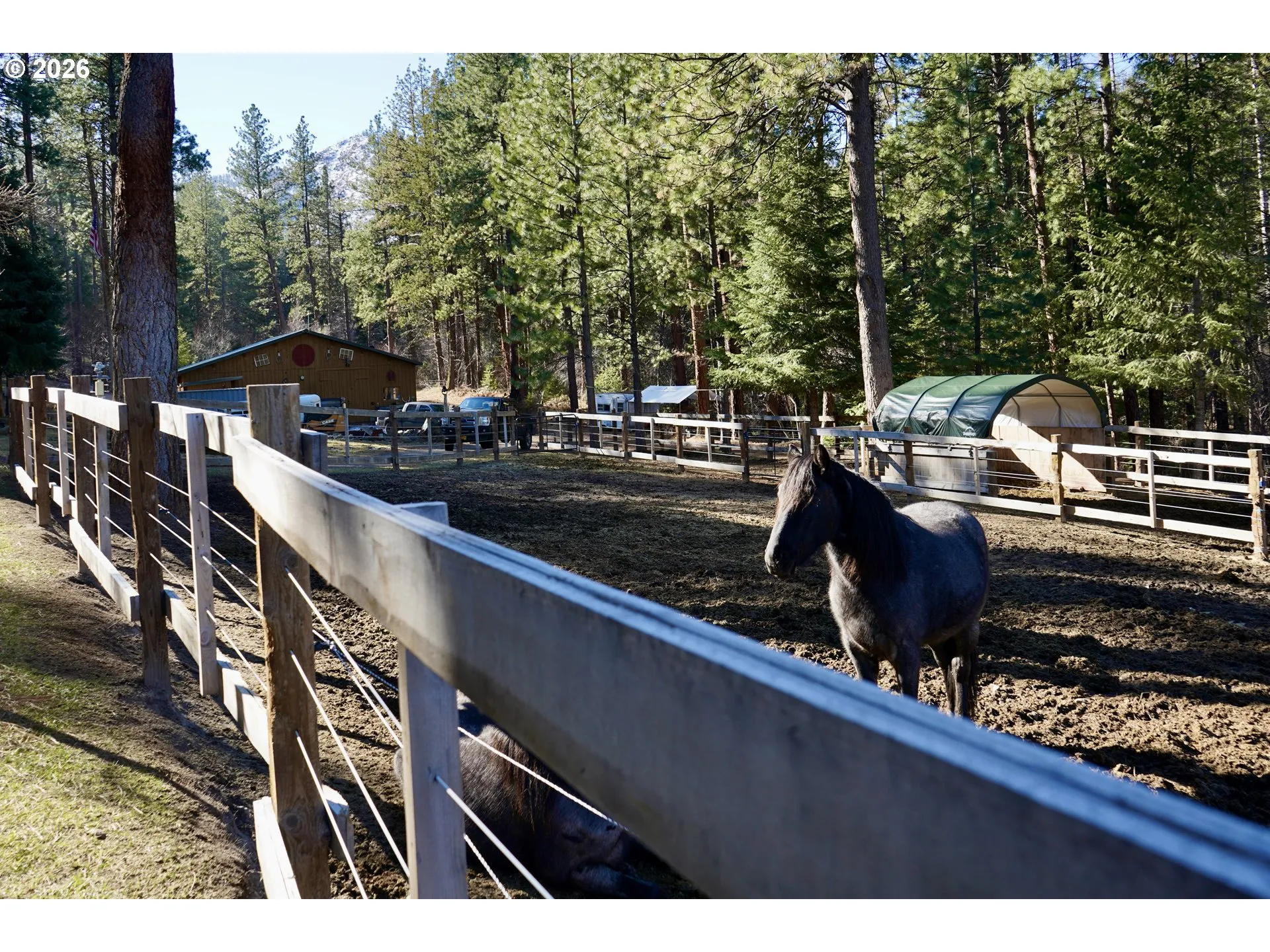 Discover the perfect blend of privacy, beauty, and self-sufficient living with this custom-built log home on timbered acreage just several miles from John Day. This property offers a rare combination of usable land and abundant water – ideal for homesteading, rural living, or a private retreat. The custom log home offers warm character and thoughtful design, featuring a main-level living room plus a second living area upstairs. The kitchen includes a propane range. Heating is provided by a wood fireplace with oil backup heat; the hot water heater also runs on oil. The home is supplied by one of several springs on the property, providing abundant water year-round. Step outside onto the expansive 621+/- square-foot deck and take in sweeping views of the irrigated meadow and the John Day Valley. A greenhouse connected to the deck extends your growing season, while attractive landscaping enhances the homesite. A log guest cabin with electricity sits near the main home. The 1,776+/- square-foot shop includes a loft for additional storage and is currently set up with half used as a workshop and half as a gym. Two powered shipping containers provide additional storage options. Access is provided by a well-maintained graveled road. The land is beautifully timbered with multiple conifer species and includes 3.5 acres of flood irrigation water rights. The irrigated meadow is fully enclosed with electric fencing and is ideal for hay production, horses, or a few cows. Pine Creek flows year-round through the property, complemented by several spring-fed ponds. A larger pond with a dock creates a peaceful setting to relax and enjoy the sounds of nature. Wildlife is abundant, with mule deer, turkey, and other native species frequently seen on the property. This property is perfectly suited for those seeking privacy and rural living without sacrificing proximity to town. *Shown by appointment only to pre-qualified buyers – Contact your agent to schedule a tour- Do not trespass*