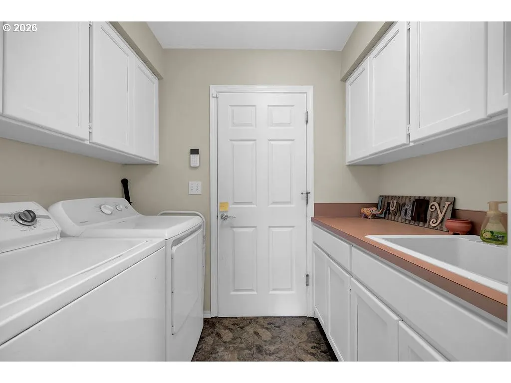 Welcome to this sought-after home nestled in a fantastic neighborhood in South Salem. This thoughtfully designed one-level residence showcases Northwest Contemporary style with Mid-Century influences, featuring vaulted ceilings, skylights, luxury vinyl plank flooring, and an abundance of natural light throughout. The spacious living area invites you to unwind beside the wood-burning fireplace with a striking natural concrete mantel, creating the perfect setting for cozy evenings at home. Just off the kitchen, a separate family room offers an additional gathering space with a sliding door that opens to the patio—ideal for seamless indoor-outdoor living. The kitchen is beautifully appointed with stainless steel appliances and a natural tile backsplash, blending style and functionality for everyday living and entertaining. The private primary suite offers a peaceful retreat, complete with a generously sized en-suite bathroom, walk-in closet, and direct access to a covered patio with a hot tub (included). Two additional bedrooms and a spacious full bathroom are conveniently located down the hallway, providing flexibility for guests, family, or a home office. A dedicated laundry room includes ample storage, a utility sink, and washer and dryer that stay with the home. Step outside to a beautifully landscaped and fully fenced backyard designed for privacy and relaxation. Enjoy the deck and patio areas, lush landscaping with landscape lighting, a garden space, and a storage shed. Sprinkler irrigation in both the front and backyard makes seasonal watering a breeze. Additional updates include a brand new water heater. All of this in a desirable South Salem location with convenient access to I-5, shopping, parks, and local amenities. Schedule your private tour today and discover why this incredible home checks all the boxes.