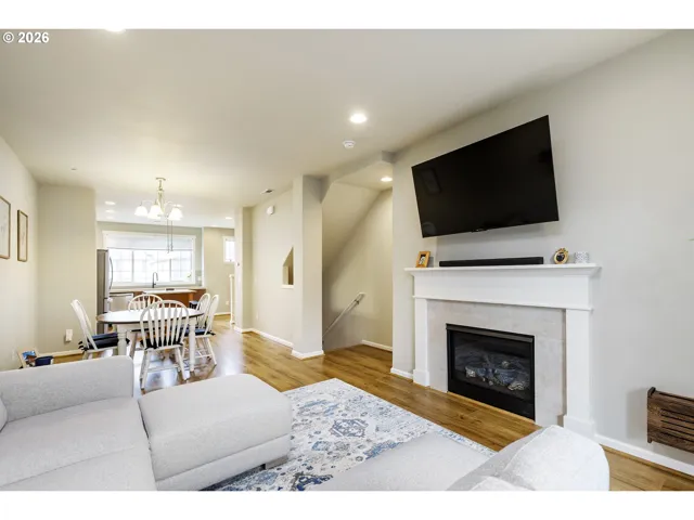 Desirable location and welcoming community! This well-maintained townhouse is tucked within the River Terrace neighborhood, surrounded by detached homes, trails and a beautifully maintained park. A Sherwood address with convenient access to Tigard and Beaverton amenities.The open floor plan features 10-foot ceilings and laminate flooring throughout the main level, creating a bright living space. The living room offers a gas fireplace and a stunning wall of windows with a sliding door that opens to a small private, covered back deck.The kitchen is has granite countertops, stainless steel appliances, and a large island with an eating bar. The refrigerator is included. A charming niche adds flexibility, ideal for a buffet, workspace, or desk.The dining area comfortably accommodates a full-size table.Upstairs, you’ll find a primary with an ensuite bath and ceiling fan. The second bedroom is vaulted has a ceiling fan and a full bathroom. Laundry area with included stackable washer and dryer. Additional features include a new smart garage door opener with app and keypad, Ring doorbell and a new shower door. The double-deep tandem garage has built-in cabinets and storage racks, offering excellent storage or the potential for a home gym or hobby space.The community recreation center is awesome! Resort-style amenities including a pool, fitness center, basketball court, playground, party room, and more. The HOA covers exterior maintenance (paint, gutters ,yard, roof), insurance, annual laundry vent cleaning and common areas providing a truly low-maintenance lifestyle.Exceptionally clean and well maintained, no pets and a no-shoes home!