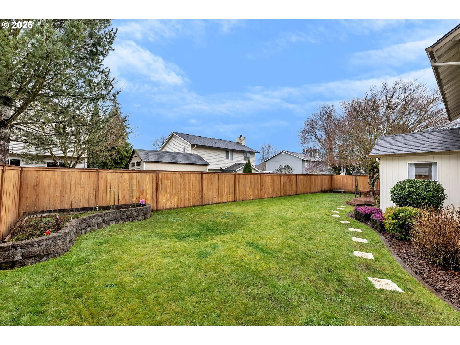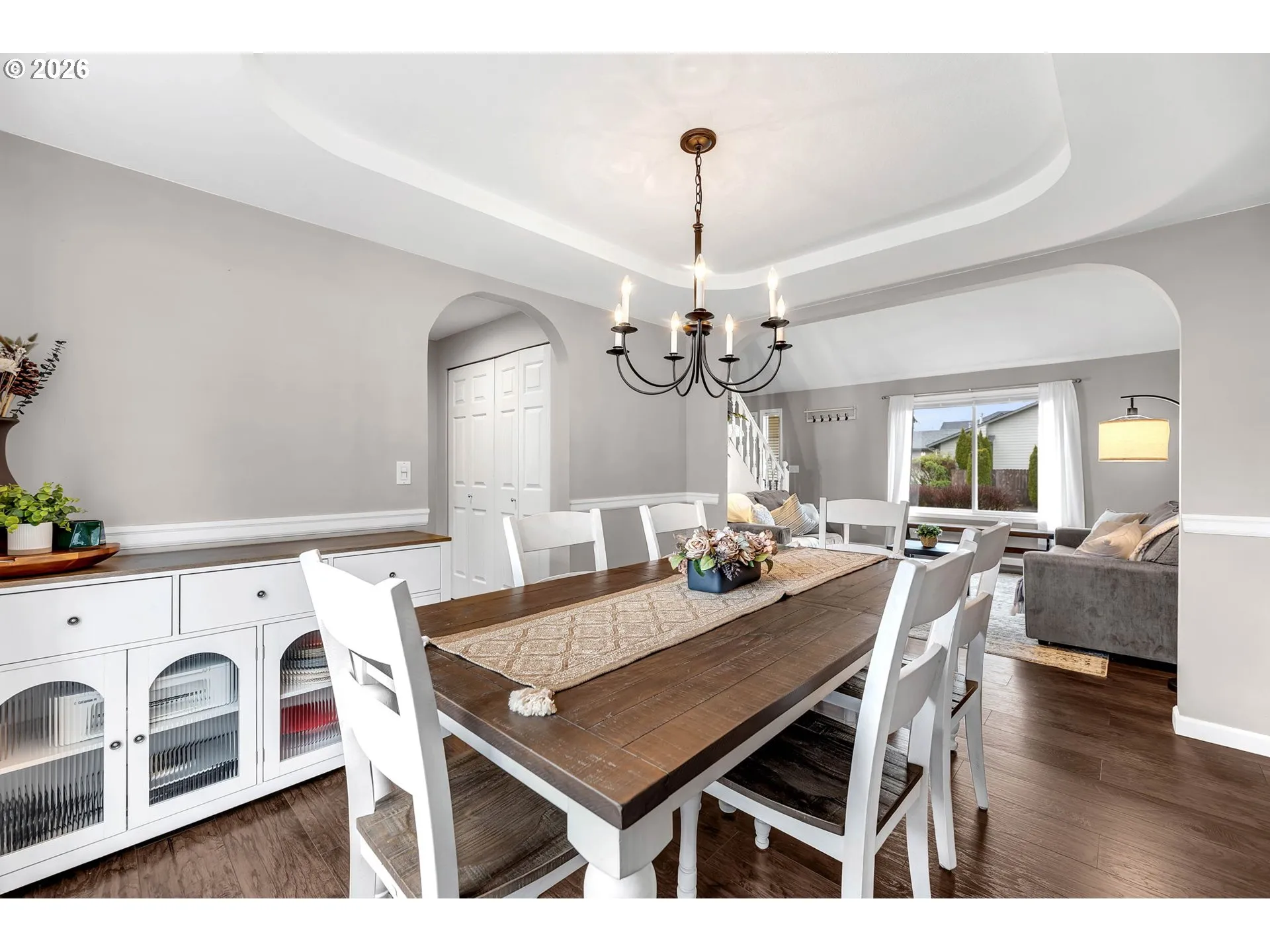 Meticulously maintained two-story traditional home boasts beautiful updates throughout. The open floorplan features soaring ceilings, durable engineered hardwood floors, elegant archways, and abundant natural light. The great room includes a well-equipped kitchen with ample cabinetry, a sunny breakfast nook with a slider to the back, and a cozy family room with a fireplace. Vaulted formal living room, and formal dining room with tray ceiling. The spacious primary suite offers double closets and a private, spa-like bath with a clawfoot tub and step-in shower. The upper floor is completed by three additional spacious bedrooms. Outside, enjoy a pristine backyard retreat with a level lawn, mature landscaping, and a large deck with built-in bench seating. There’s a garden shed with an attached catio, and a separate detached shed perfect for a playhouse, home office, or artist’s studio. The home also includes an oversized three-car garage. Prime location in quiet neighborhood, convenient to schools, parks, shopping, and dining.