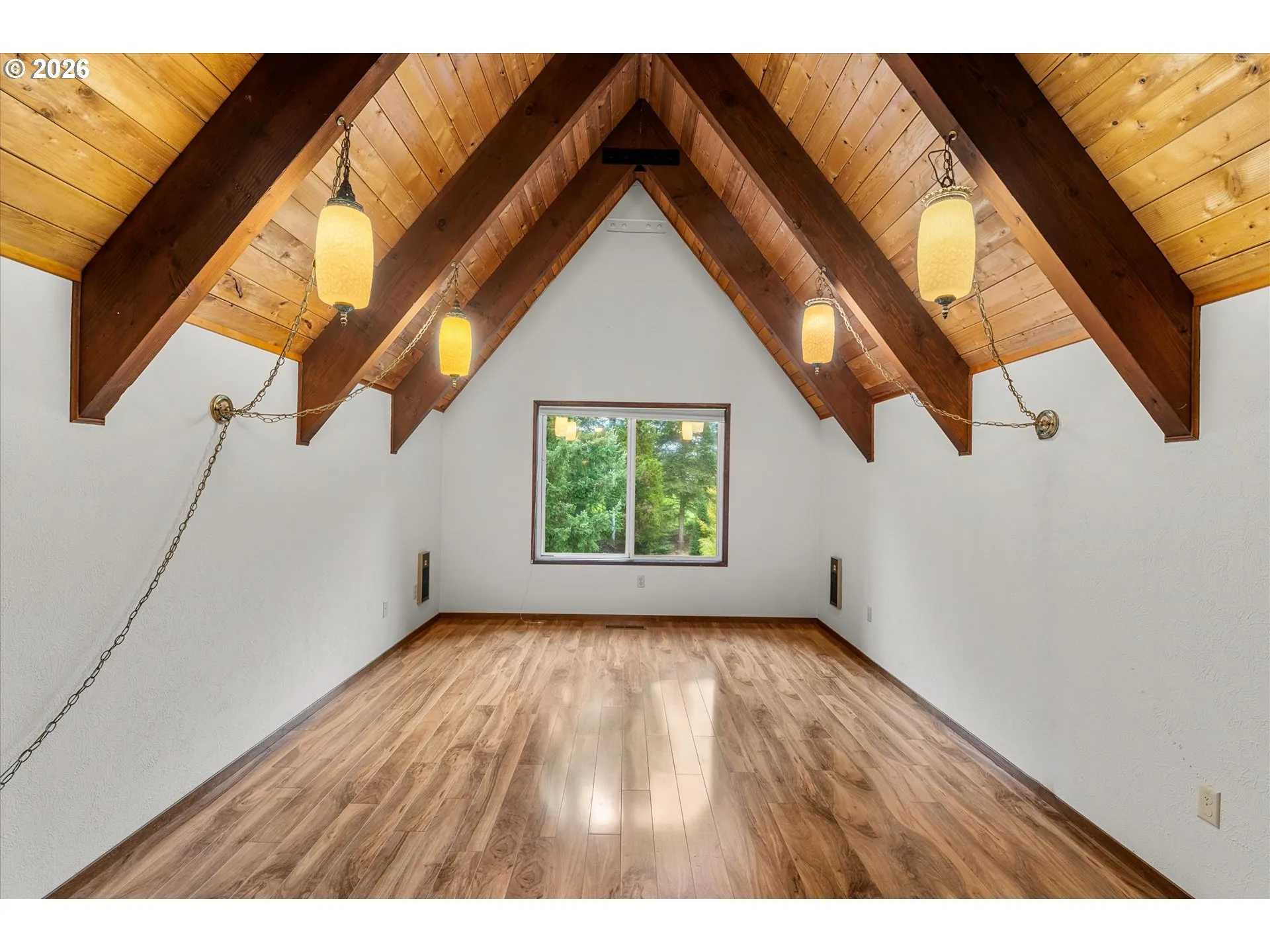Tucked away at the end of a private drive and surrounded by six scenic acres, this striking A-frame home offers a rare opportunity to own something truly special. With breathtaking views and timeless architectural character, this is a home for those who appreciate craftsmanship and a setting that cannot be replicated. Inside, soaring vaulted ceilings, exposed beams, and walls of glass define the dramatic great room, where natural light pours in and the landscape becomes part of the living space. A stunning stone fireplace anchors the room, creating warmth and a natural gathering place. Rich wood finishes throughout the home reflect the classic Northwest lodge style, while the thoughtful layout offers three bedrooms, two baths, and an office designed for comfortable everyday living. The dining area captures beautiful views of the surrounding countryside, and the expansive deck invites you to relax, entertain, and take in the peaceful surroundings. Outside, the six private acres provide space, privacy, and endless possibilities—from gardening and recreation to simply enjoying the tranquility of nature. The landscaping is a nature enthusiast’s dream, with rare flowering trees, such as Japanese white wisteria, Japanese weeping snowbell and Sargent Tina dwarf crab apple tree. With the woodshop/barn, you will have a place for your hobbies or turn it back into the original home for 3 horses. This is not a typical home. It is a property for someone who values architecture, quality, and the kind of setting that makes every day feel like a retreat.